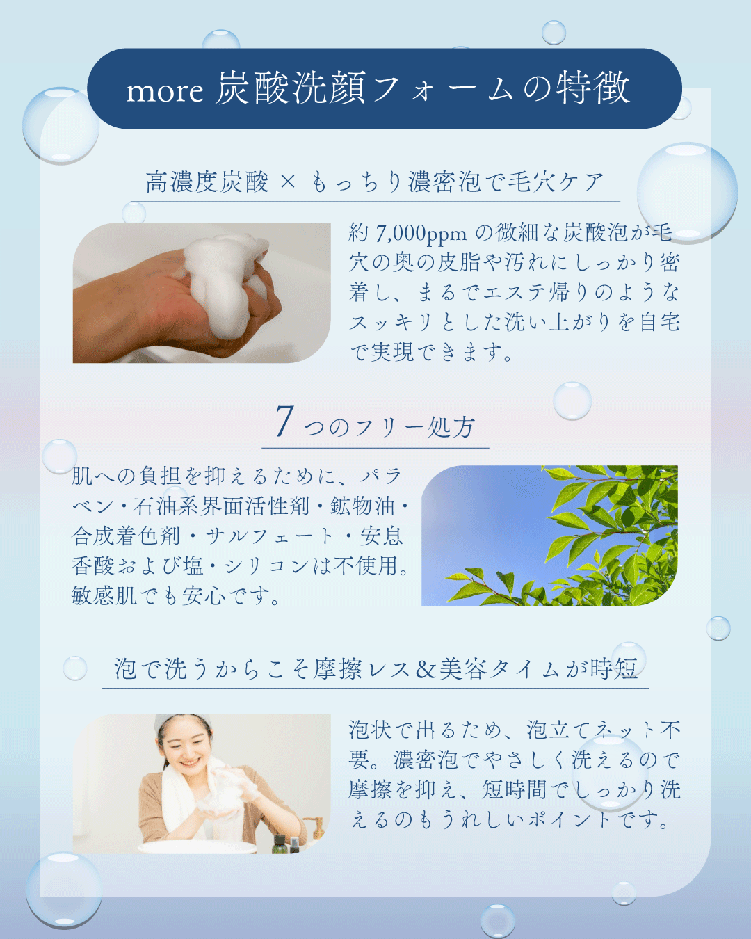 モコモコ濃密泡と炭酸の力で、毛穴汚れをやさしくオフ。