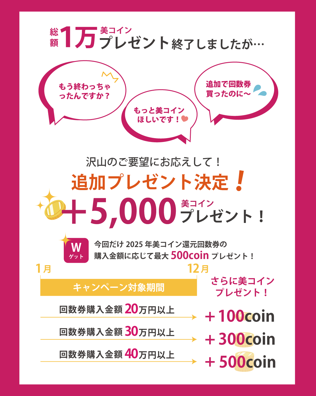 そんな中、「もっと美コインがほしい!」「次のチャンスはありますか?」という嬉しい声を多数いただきました。