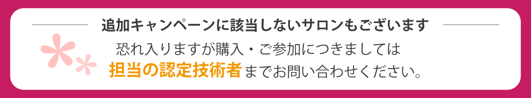 ※追加キャンペーンに該当しないサロンもございます。購入・ご参加につきましては、担当の認定技術者にお問い合わせください。