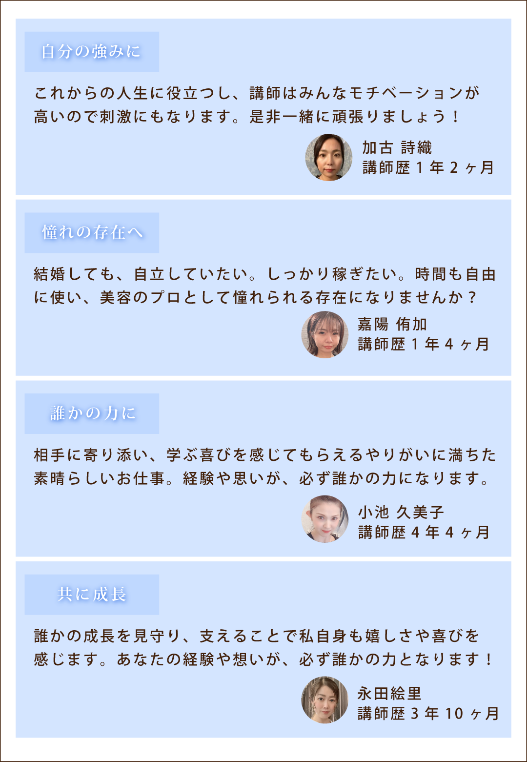 あなたも、美容の魅力を伝える側として女性の夢をサポートしながら、自分の未来も豊かにしていきませんか?