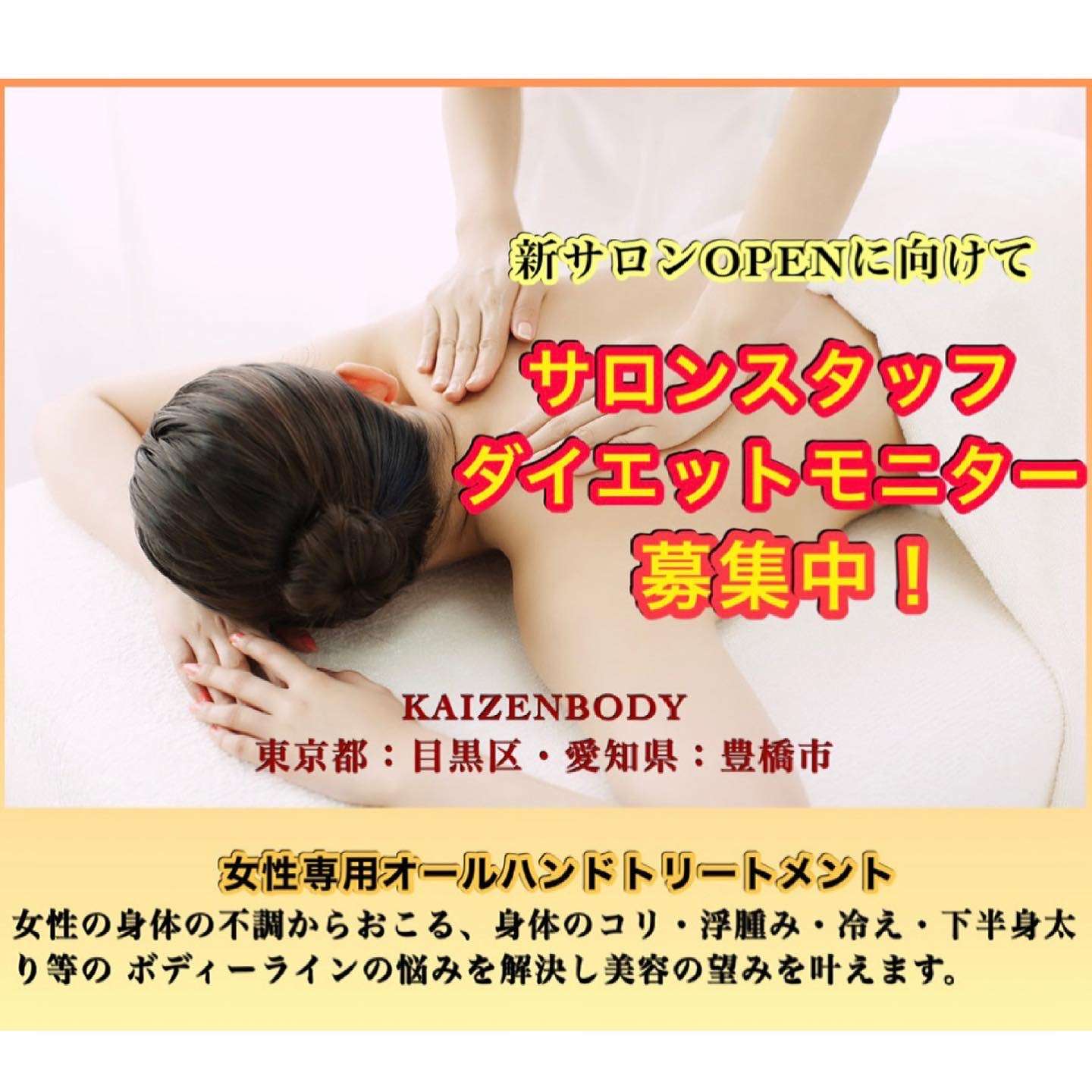 未経験OK.副業ok.将来自分のサロンを出したい方.やる気のある方OK.美容が好き.手に職をつけたい.喜んでもらえる仕事がしたい方.サロンを出したいが場所がない方.エステティシャンにご興味のある方.kaizenbodyの技術ファンな方など