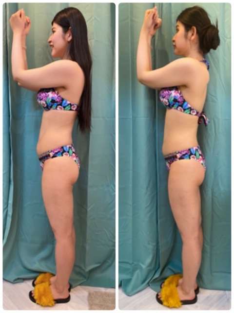 なんと埋もれてた肩甲骨がでてたのと後ろから見たらよくわかるのですが脇腹のお肉がすっきりしましたあ😭💕