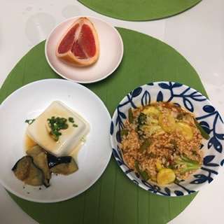 トマトリゾットおじや風?(ズッキーニ、トマト、アスパラ、ブロッコリー、玄米、生姜)