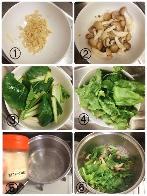 しめじと野菜の生姜スープ(小松菜レタスしめじ生姜)