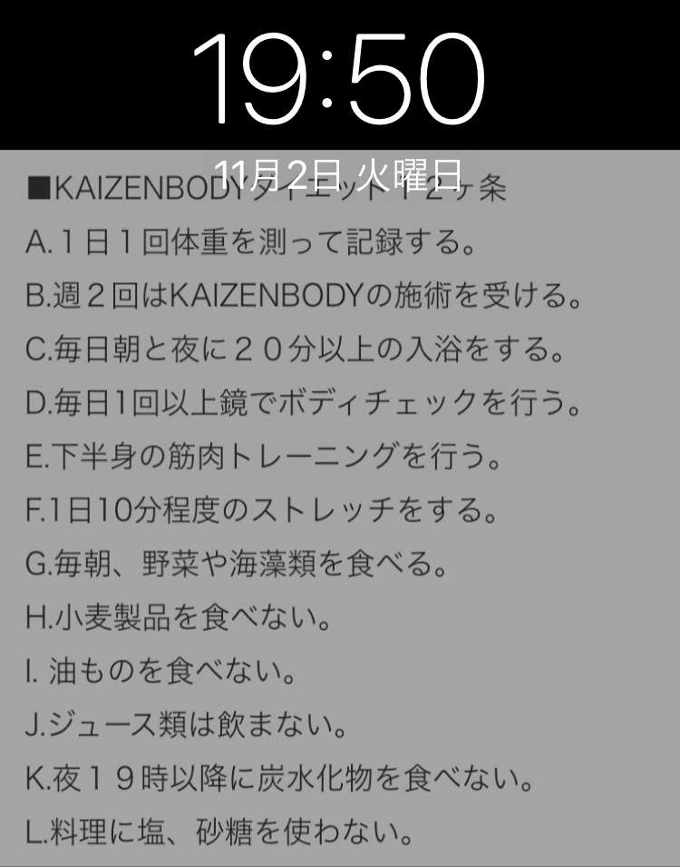このKAIZENBODYさんのダイエット12ヶ条を見る事で、私はダイエット中なんだ!!と改めて思い直すようにするのと、普段の姿勢などもこの画面をみて、あっ!と気付いて正したりすることがあります!