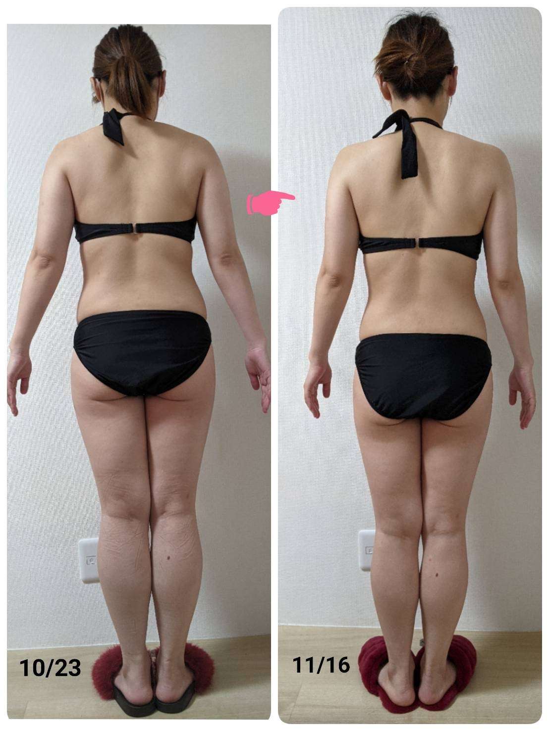 背中周りや、腰回りの肉、膝の上の肉であったりこんなに変化が目で見てわかるようになって、本当に嬉しいです♡