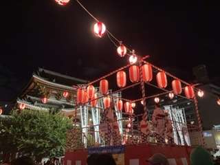盆踊りは、一休さんやダンシングヒーローなど盛り上がる曲から、外国の曲も流れていて外国人観光客もたくさん来ていました。