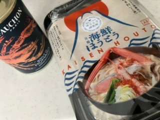 そして、昨日の夜は静岡土産のほうとうを食べました。エビを購入し、鍋に入れ食べたのですがとっても美味しかったです。