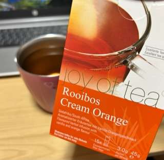 今日のお茶はロンネフェルトのルイボスクリームオレンジ。