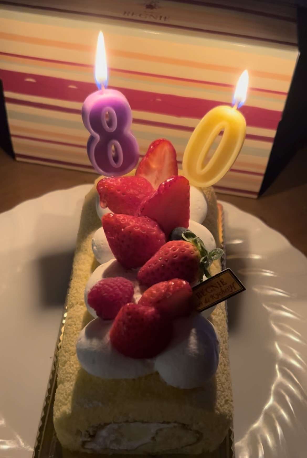 80歳なのでロウソクを立ててお祝いしました。