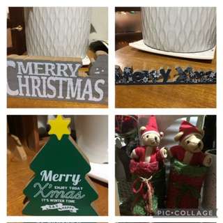 メリークリスマスの木製グッズ。色々揃えたのを毎年玄関に飾っています。確か100均。