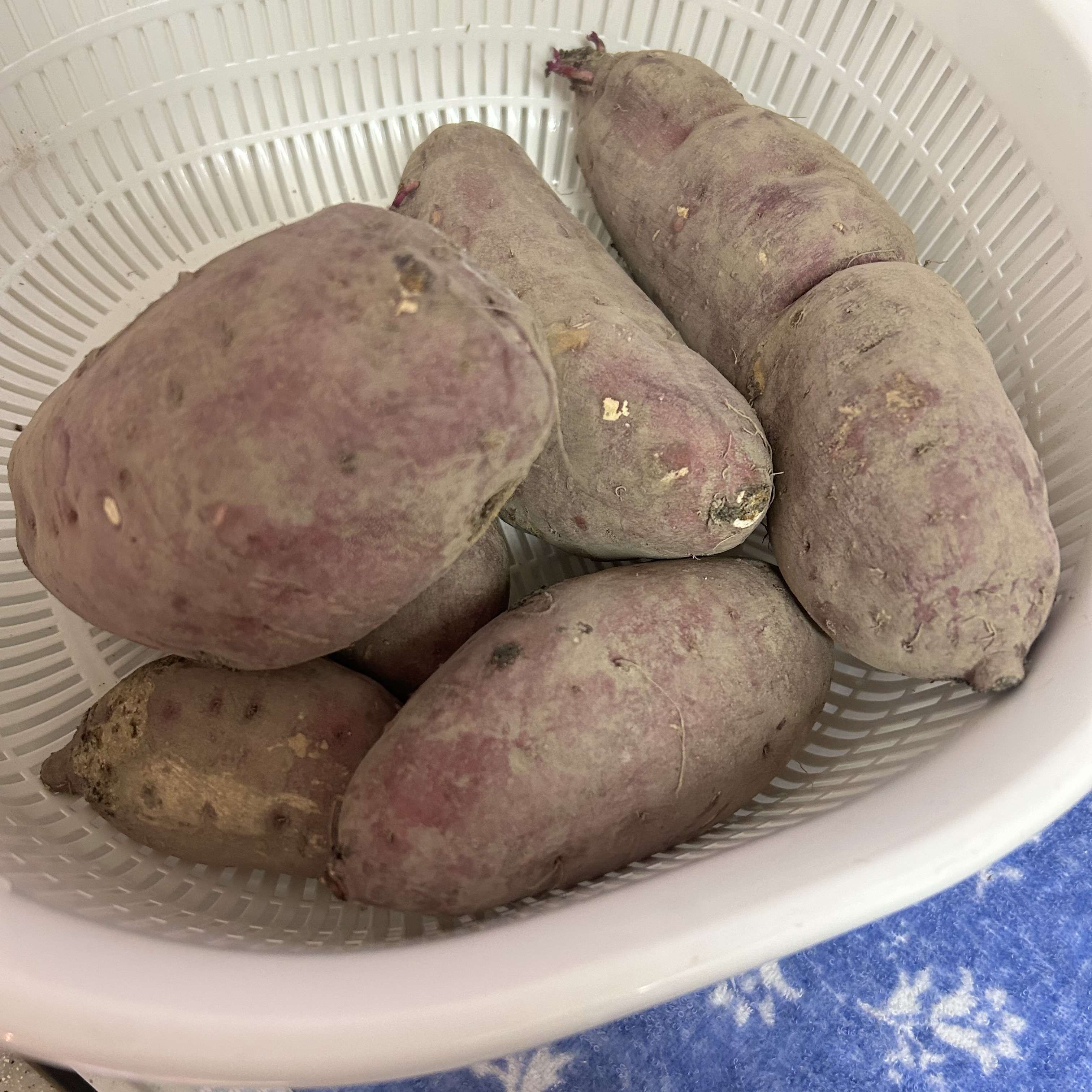 父の畑です採れた大きなさつまいもを使います。