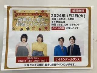 今日は、熱田イオンでお笑いライブがあったので行ってきました。