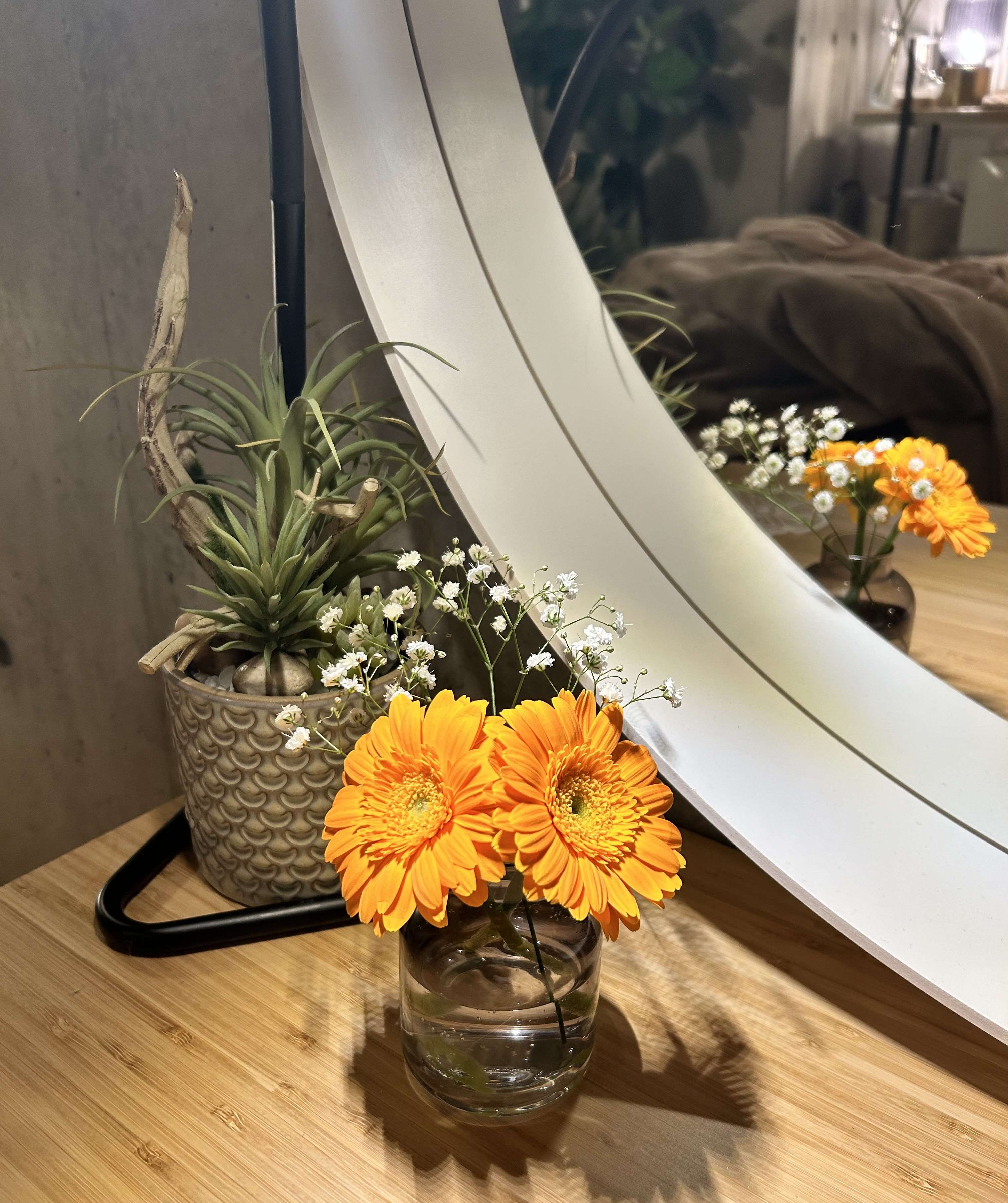 サロンにはオレンジのガーベラがツインで飾られていました。
