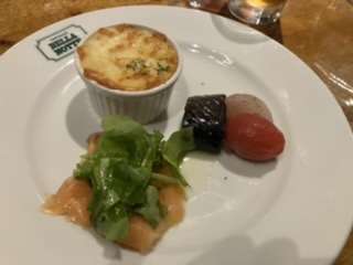 前菜、トリュフのカルボナーラ、ティラミスなどどれも本当に美味しく感動しました。ローランドのサインや、写真もありテンションが上がりました☺️