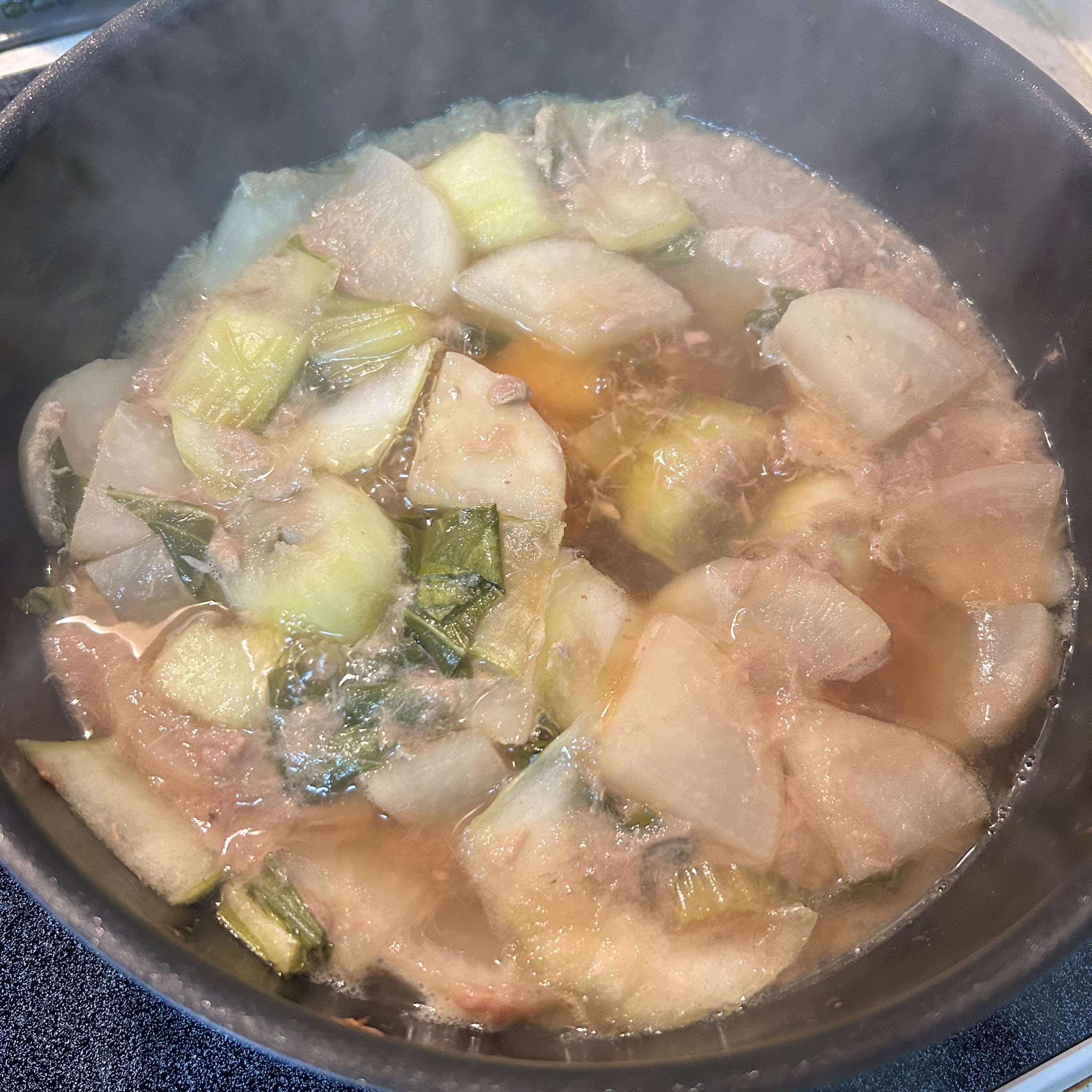 太い大根をいただいたので、シーチキンを使って煮物を作りました。