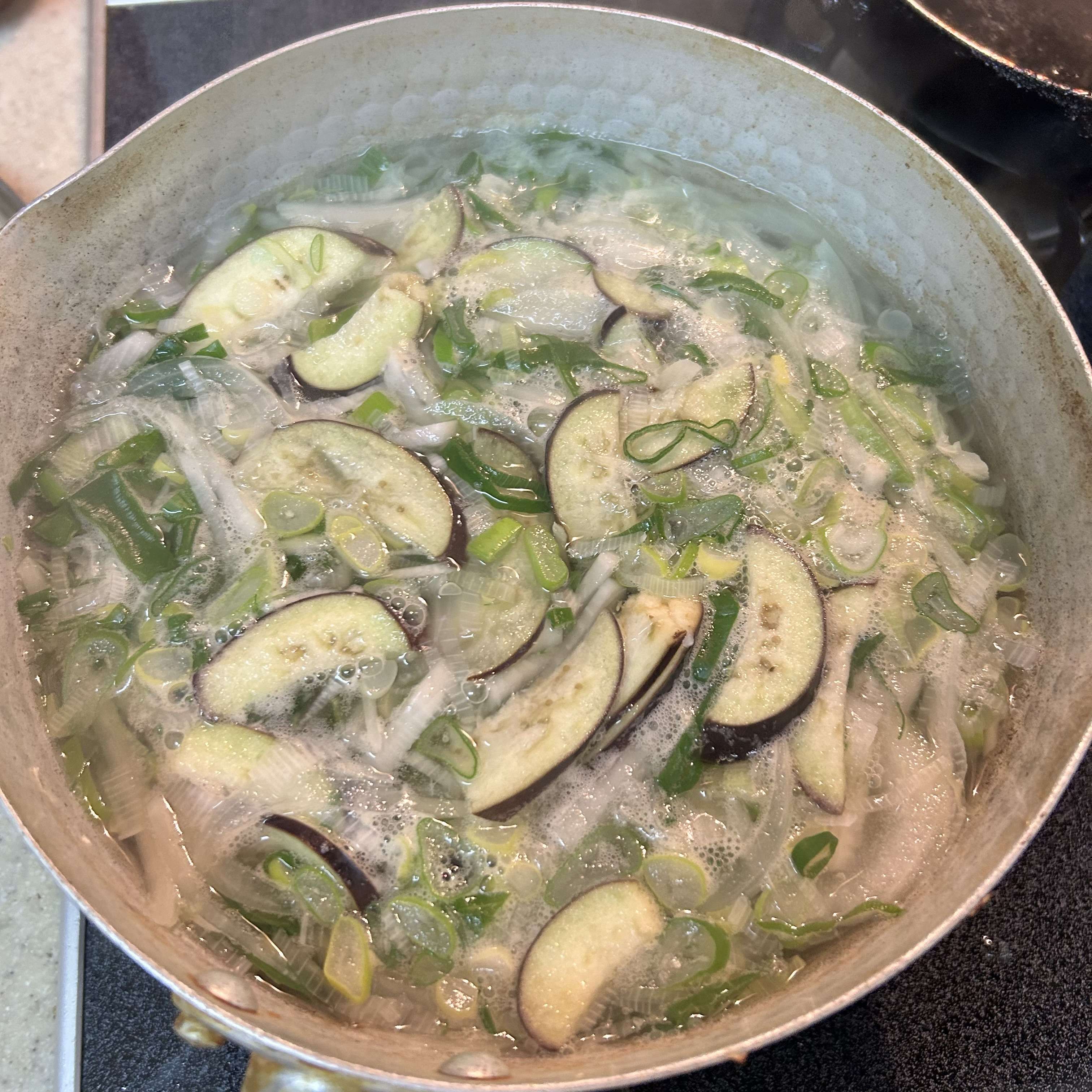 具はネギ、玉ねぎ、大根、ナスで具沢山です。