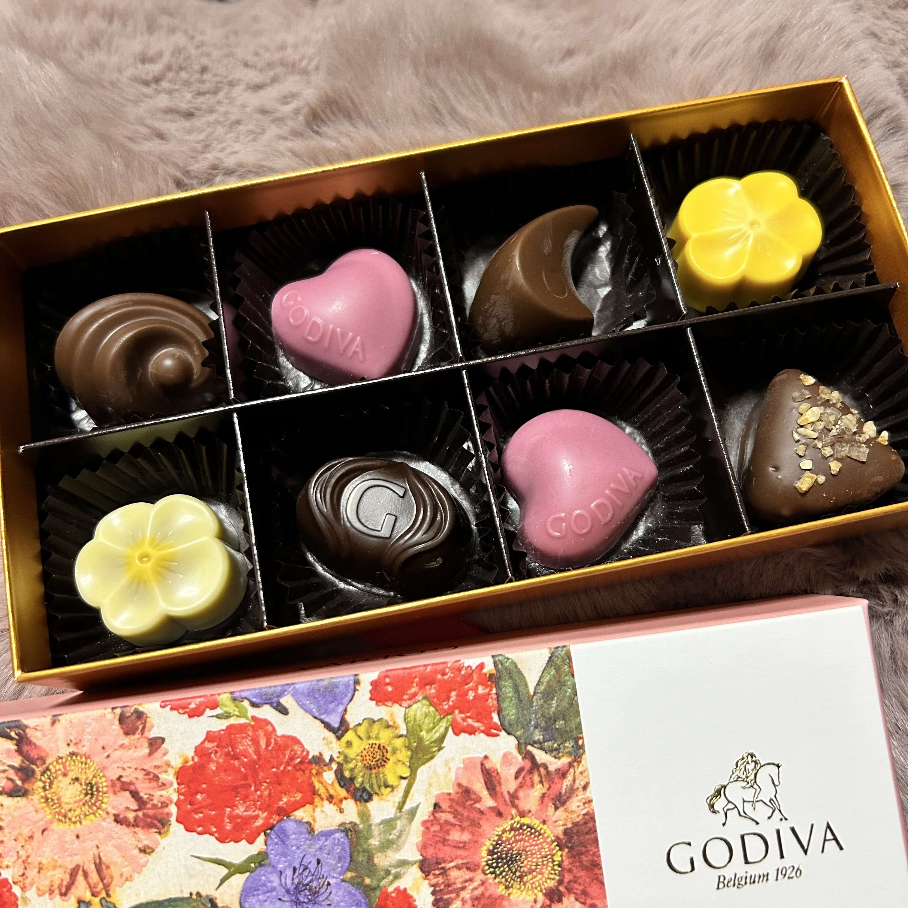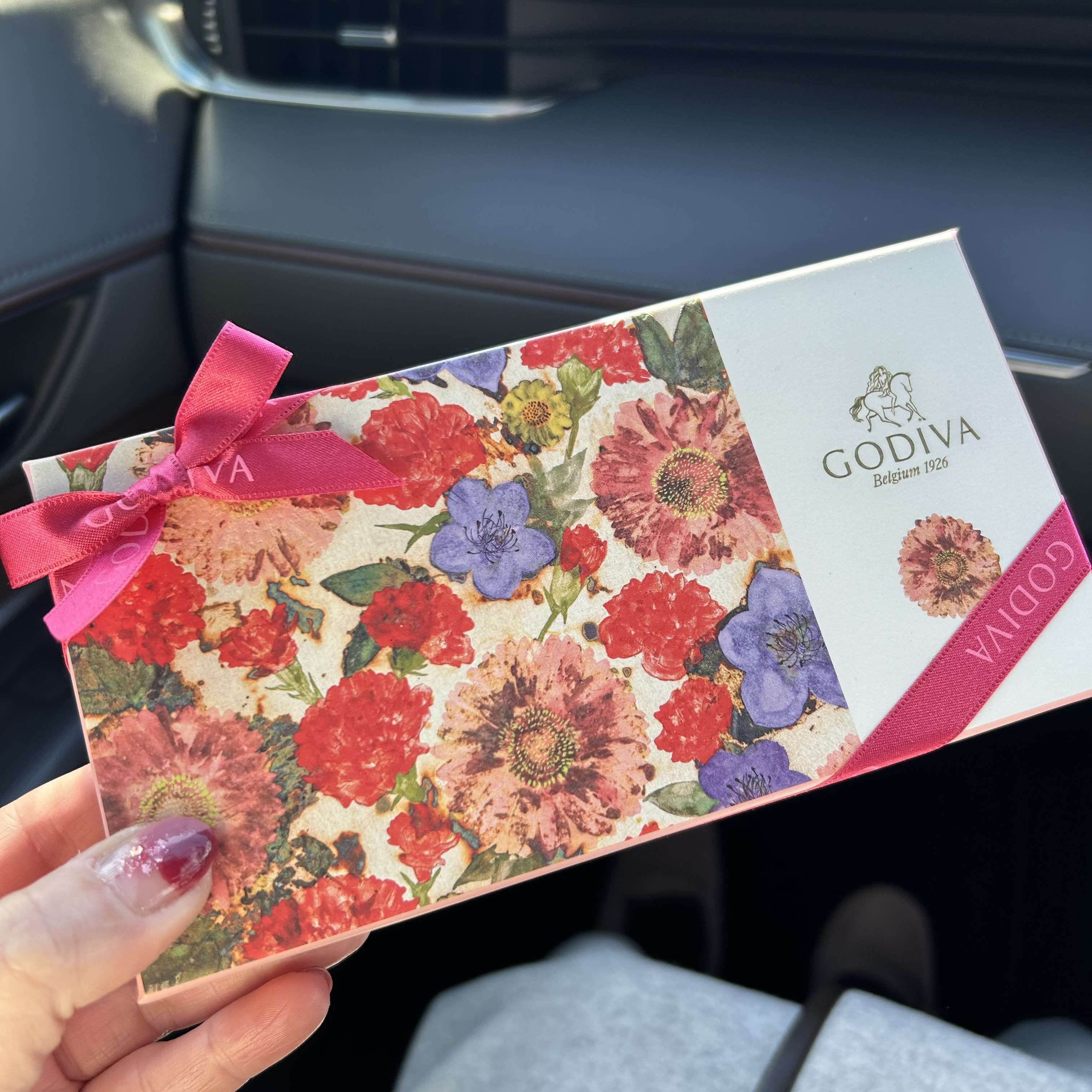 お花のイラストが可愛いパッケージのGODIVAのチョコレート。