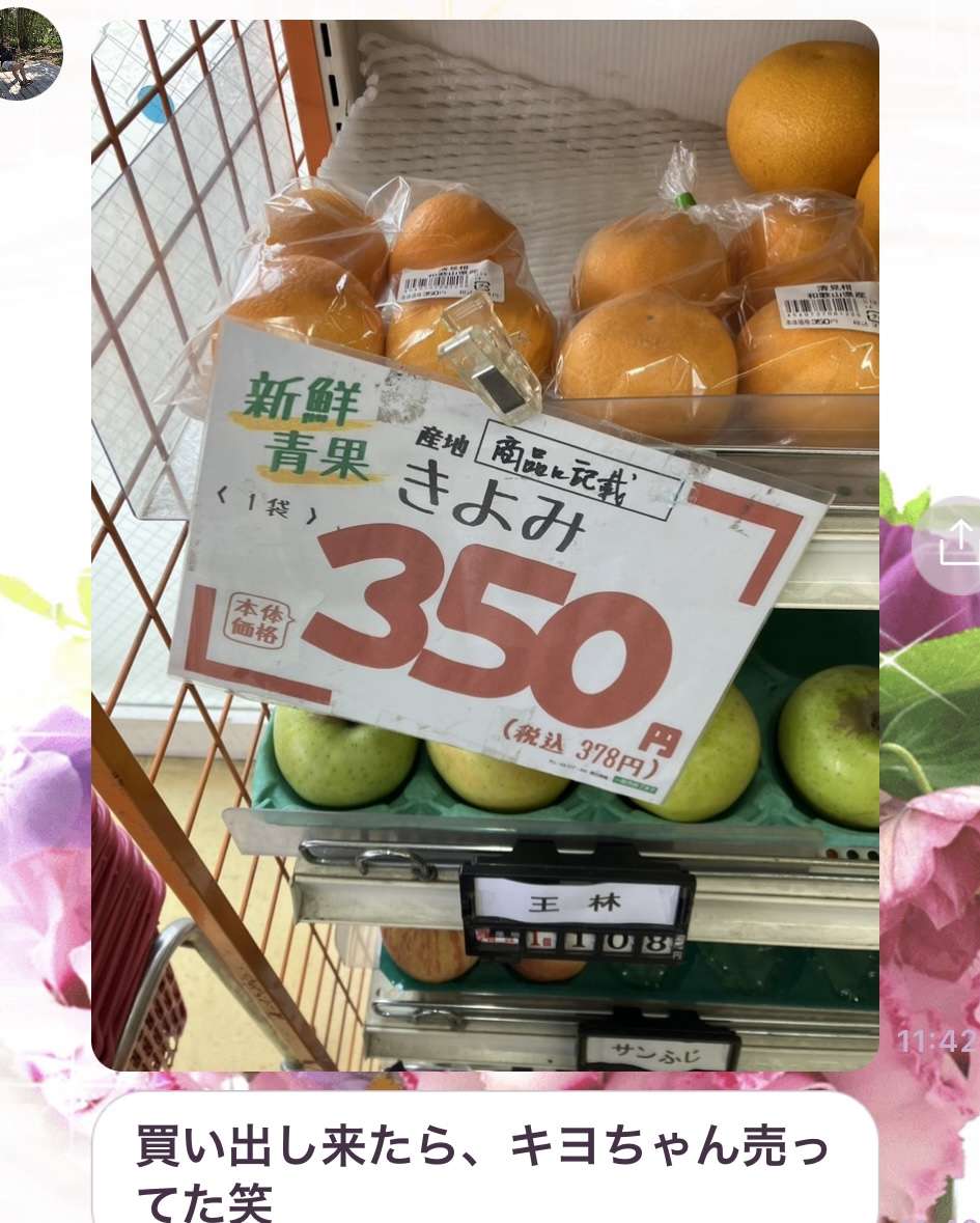 買わなかったそうですが、その後会った時に、『きよみミカン可愛かった???』と聞いたら、返事に困ってました💦