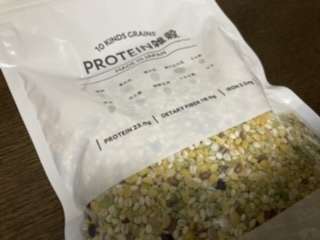 本日届いたのは、PROTEIN雑穀。裸麦、黄大豆、青大豆、黒千石大豆、もち麦、赤米、はと麦、うるち粟、ひえが含まれています。白米1合に対して、40グラム加え炊くだけなので簡単です。