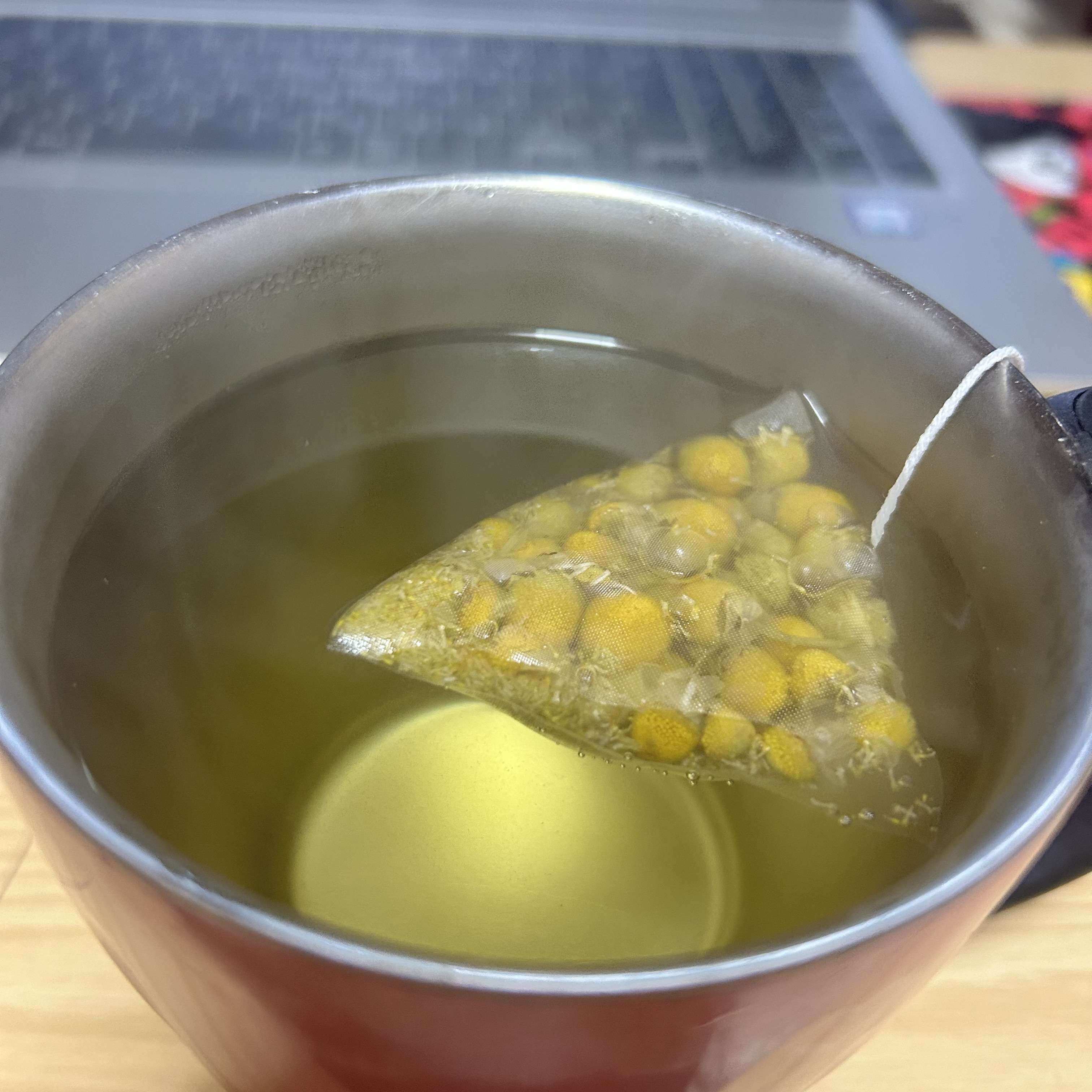 在宅時に何を飲もうかな…と、お茶BOXから選んだのはハーブティーのカモミール。