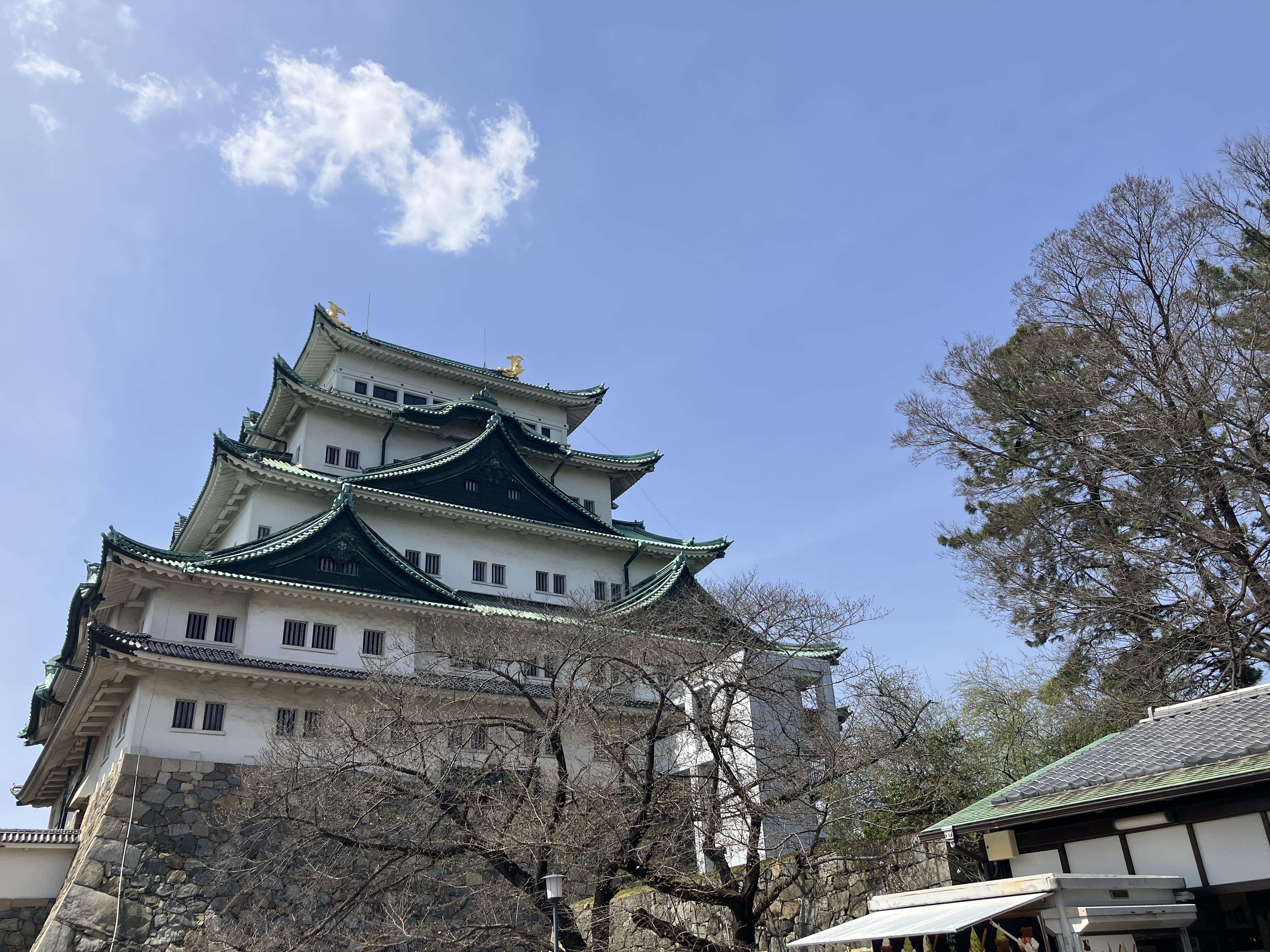 高岳のサロンから名古屋城までは歩いて行けます。今日は暖かく、春のような夏のような気候でした。雨が続いていたので、桜はまだ咲いていないかなと思っていましたが、とても綺麗に咲いていてお花見している人が多かったです。
