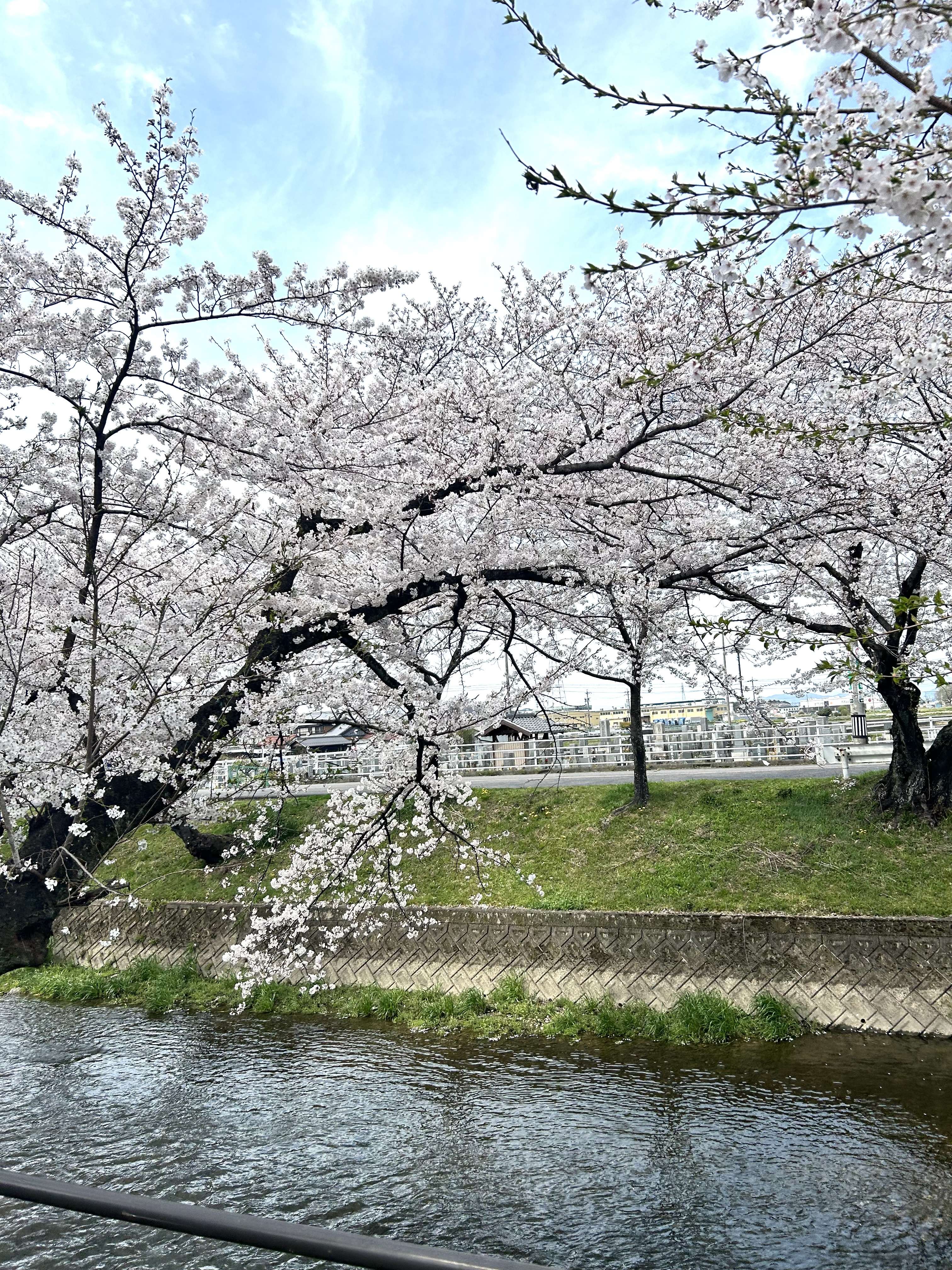 五条川は私の地元にも流れてますが、わりと川幅が広く、桜の木もまばらです。