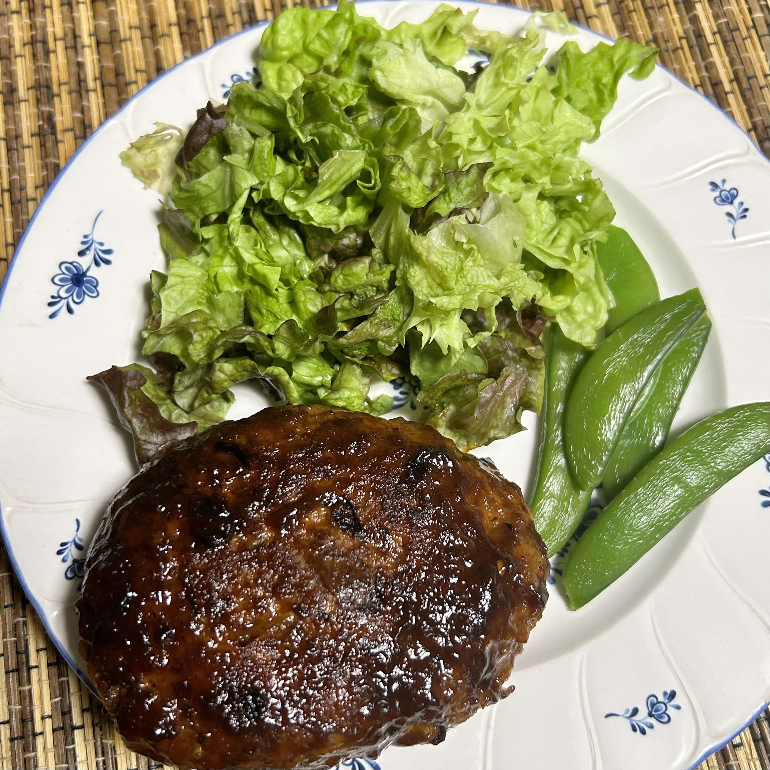 付け合わせはレタスと、父の畑で採れたスナップエンドウ🫛。