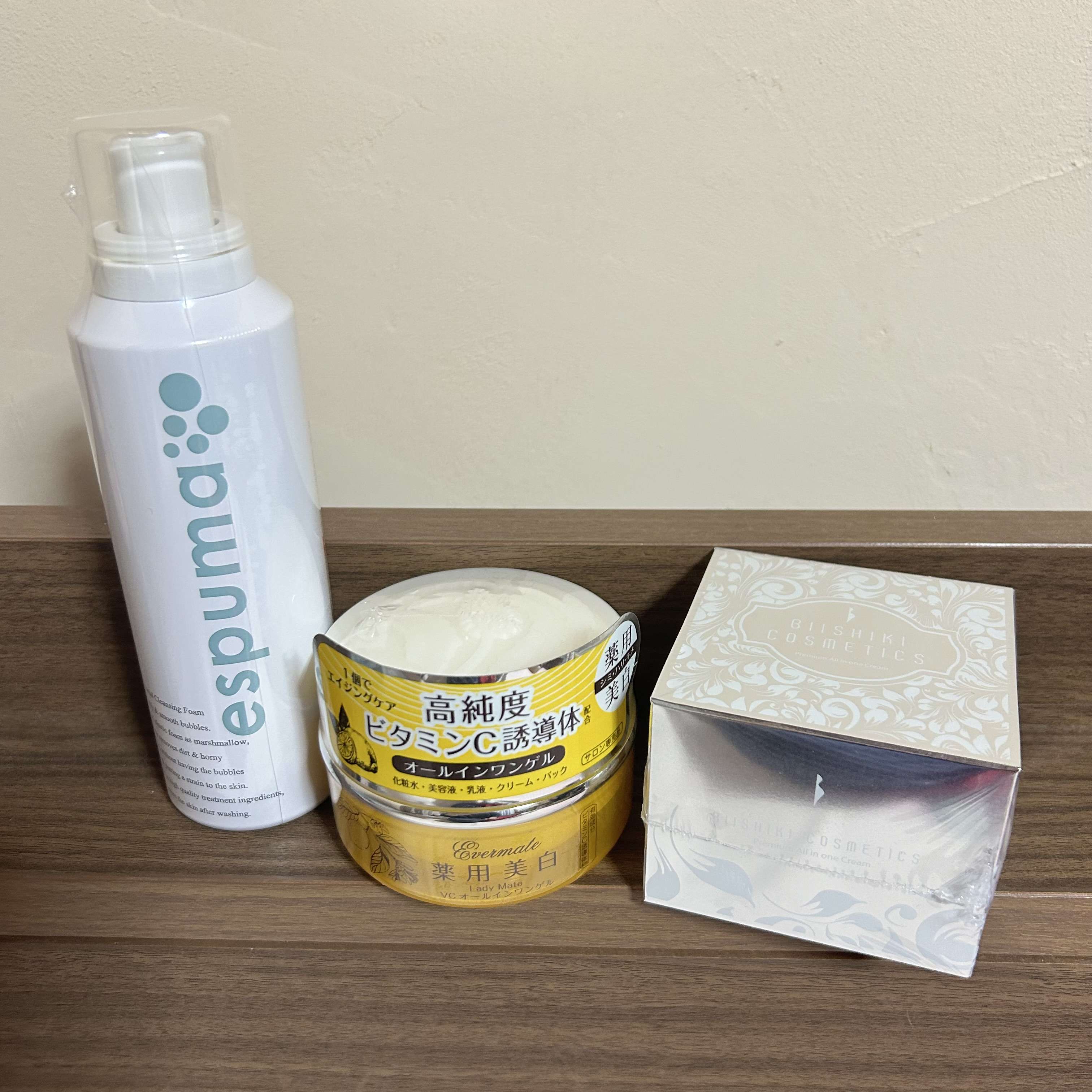 初は、洗顔フォームのスパトリートメントエスプーマと、これまたオールインワンのレディメイトオールインワンゲル。