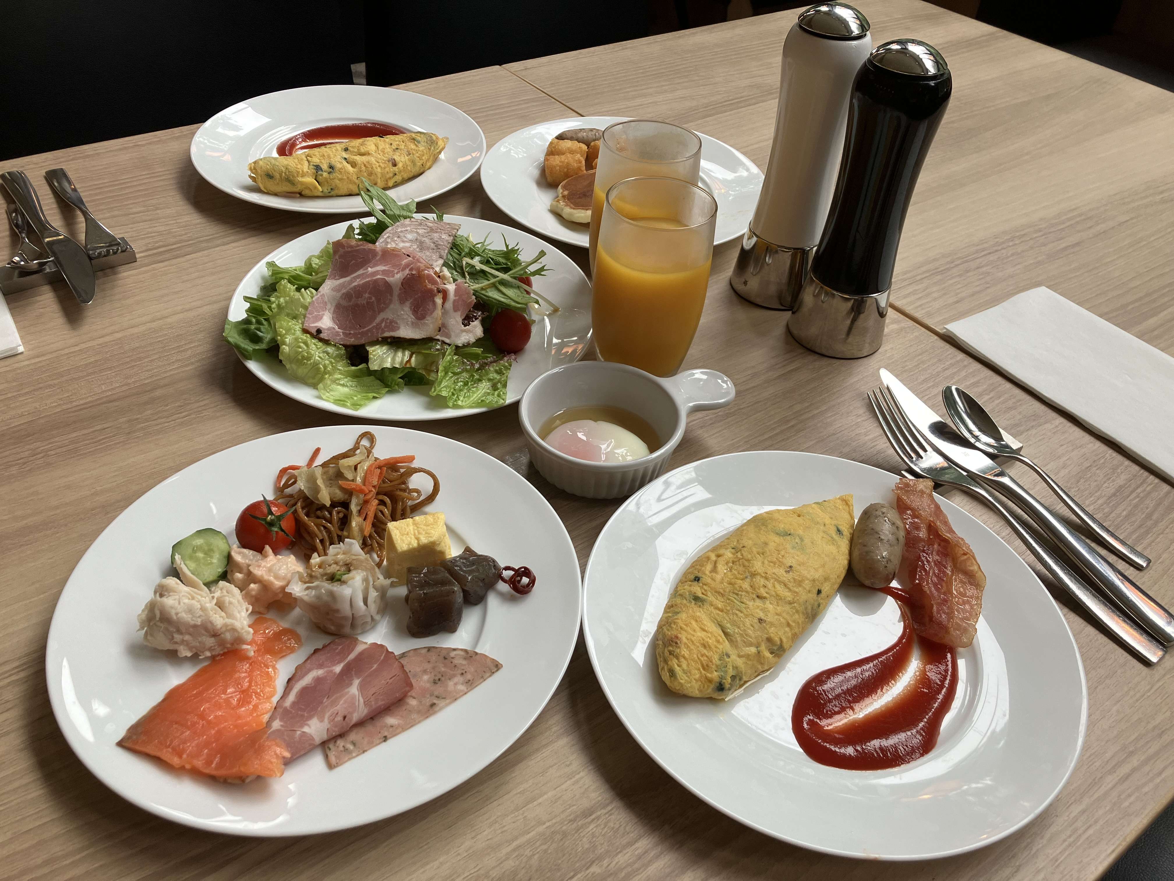 朝食は、ビッフェでした。マンゴージュースがとても美味しかったです。スヌーピーのアフタヌーンティーをしている関係でスヌーピーのぬいぐるみや飾り付けがしてあって可愛かったです。