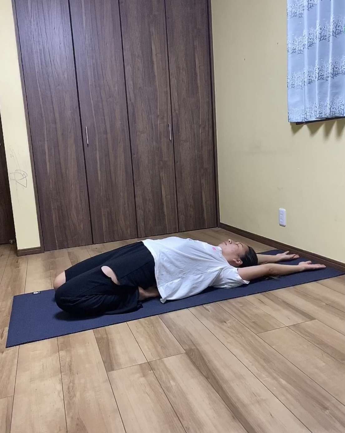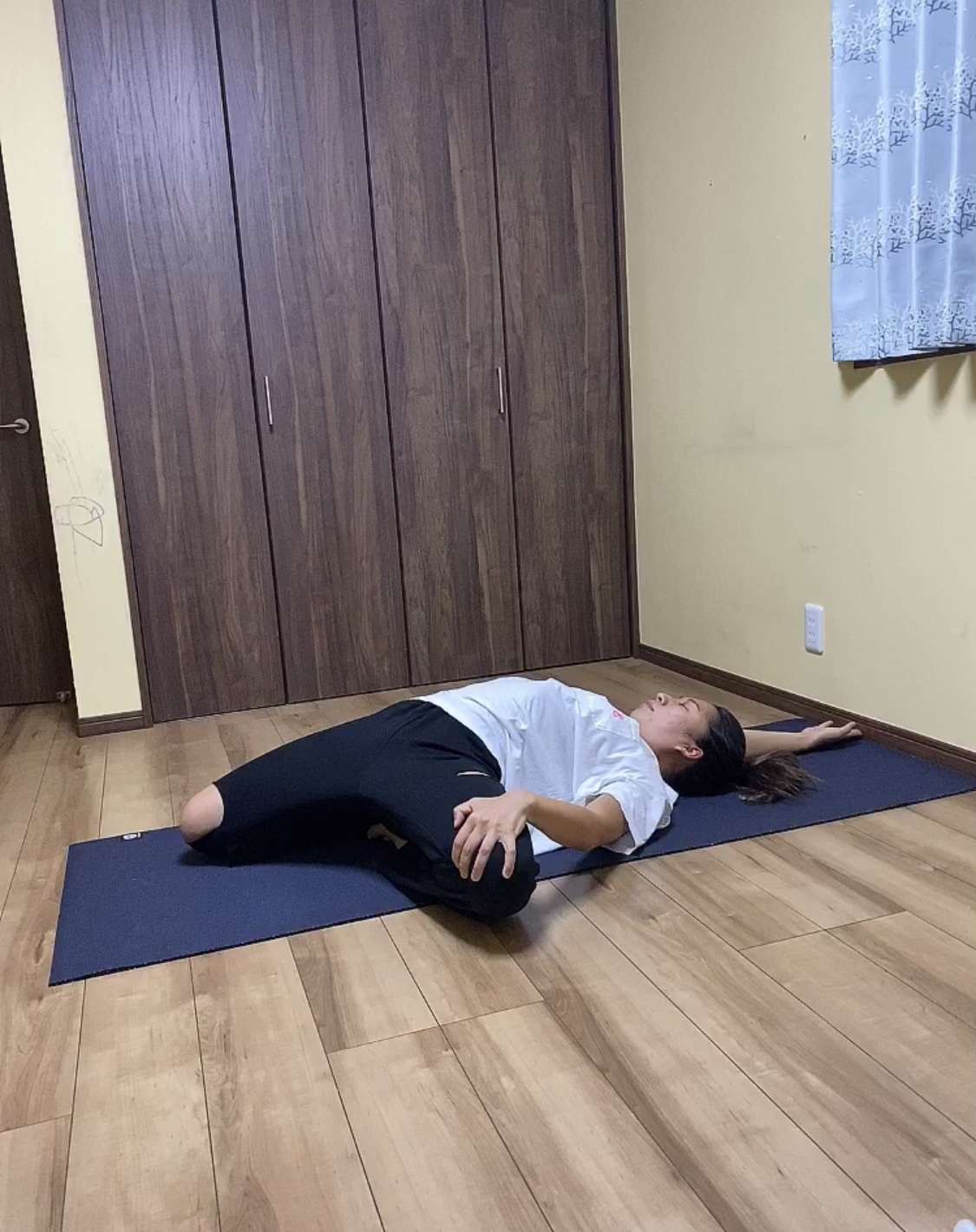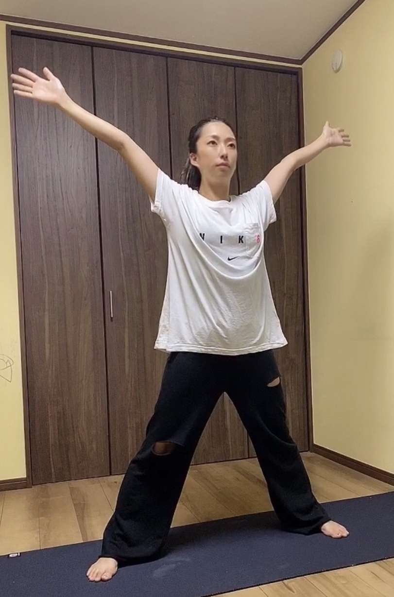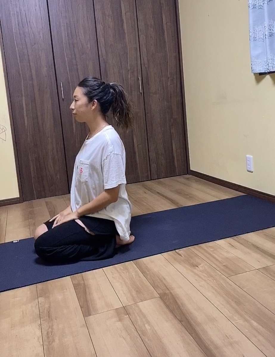 ①万歳してたち、お尻を壁に突き出しながら上半身を倒します
