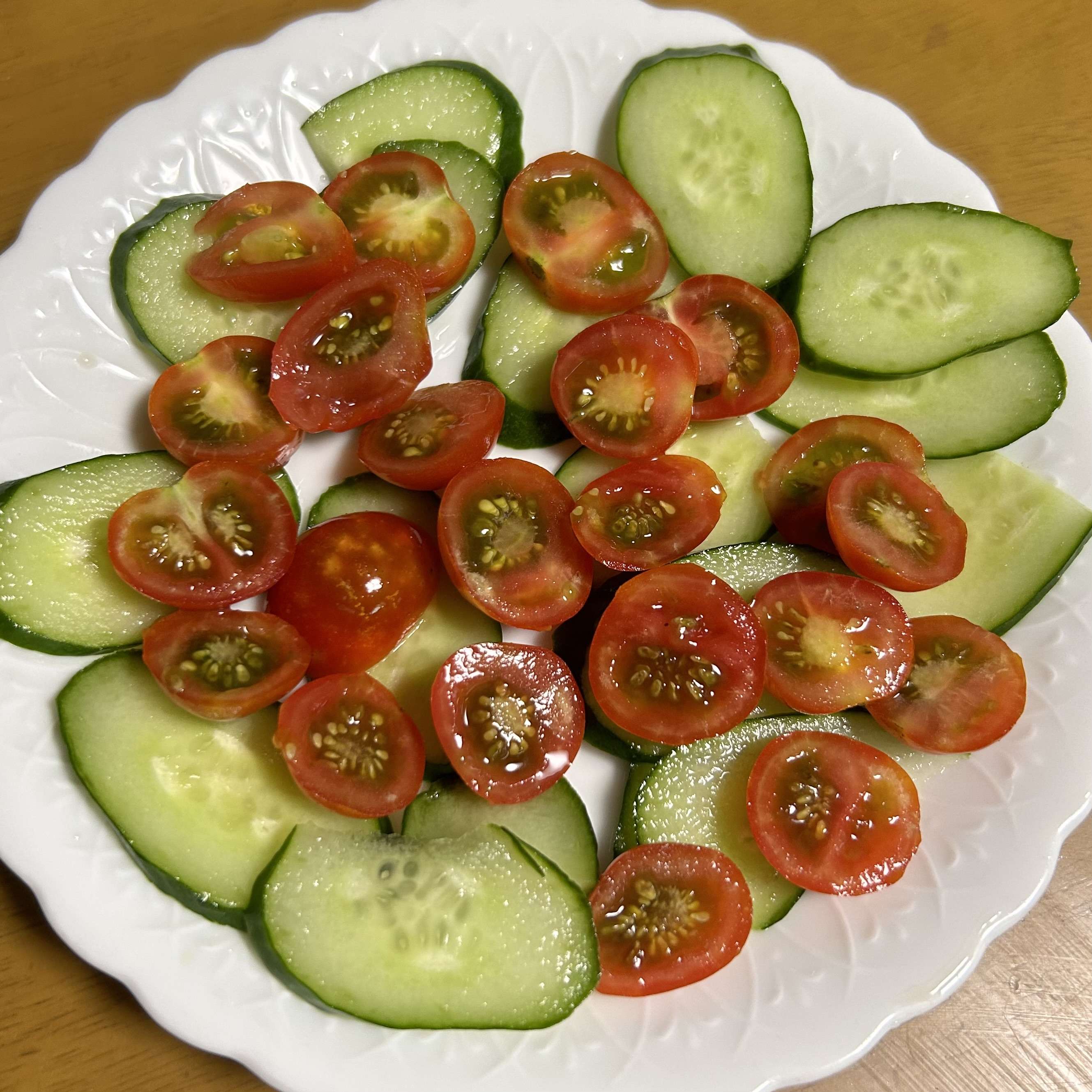 『キュウリとトマト切って〜』と言われ、見た目を気にしてカットしてみました。