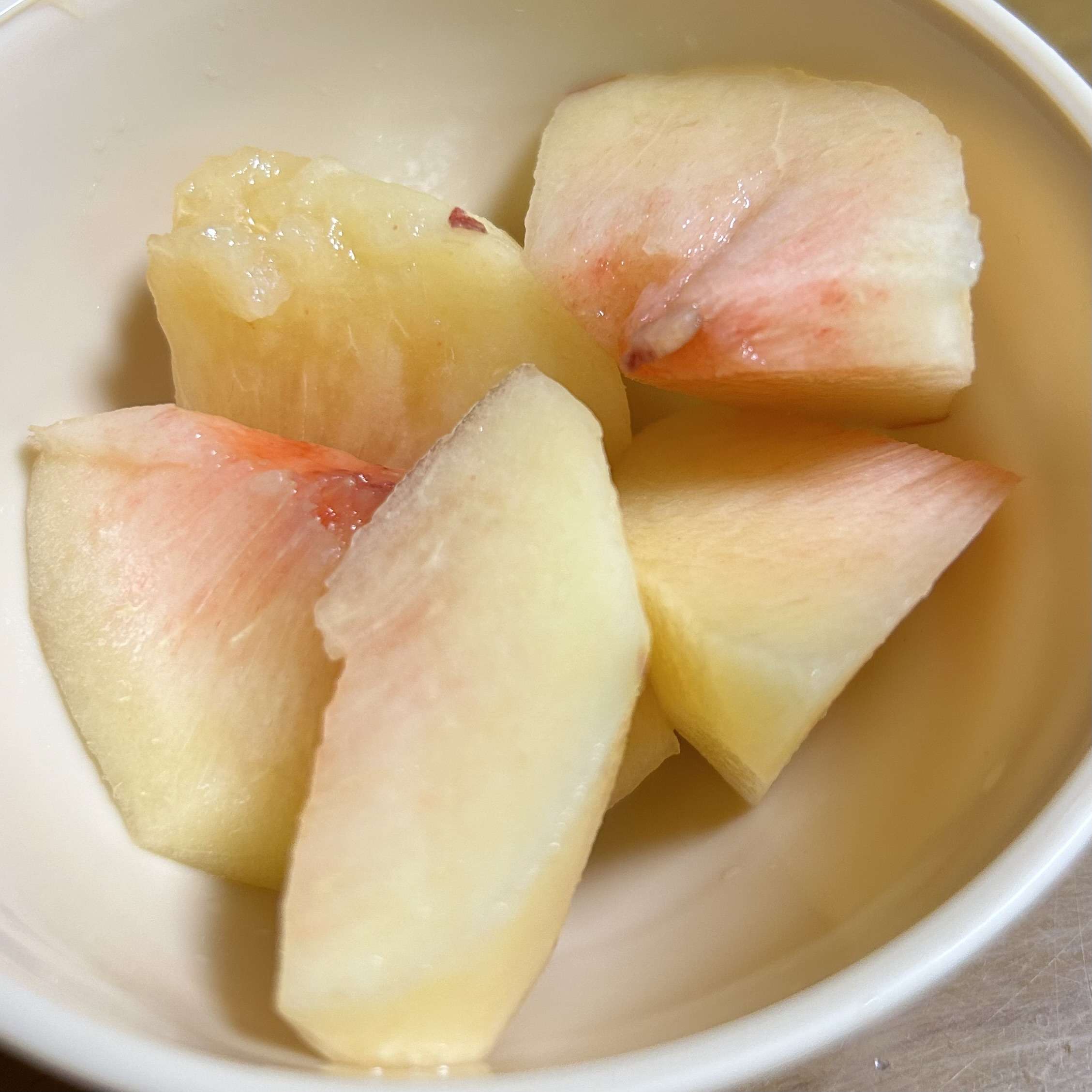 YouTubeで桃の剥き方を調べて、アボカドみたいな方法でやってます。