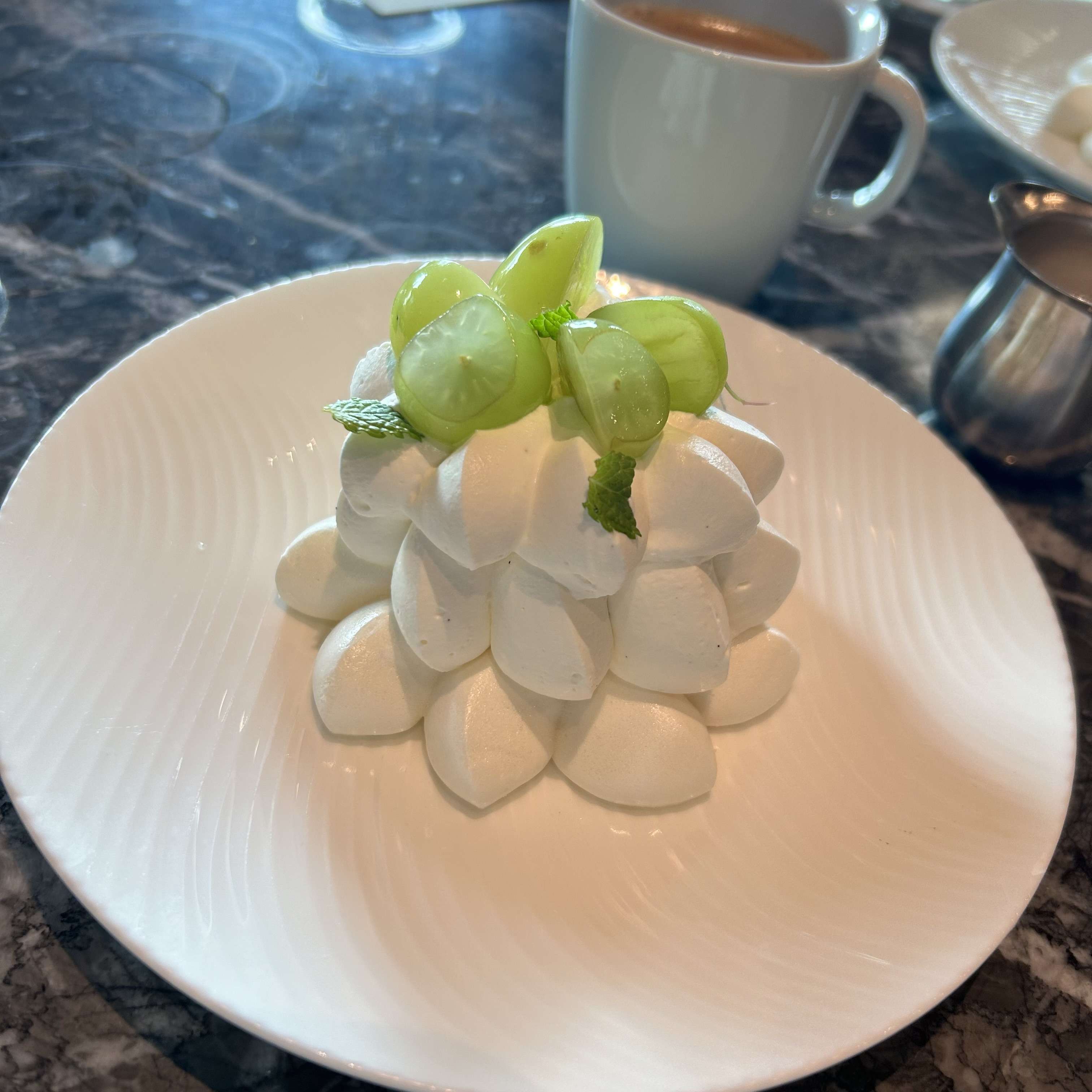 メレンゲを使ったデザートの上にはシャインマスカットが乗ってました。