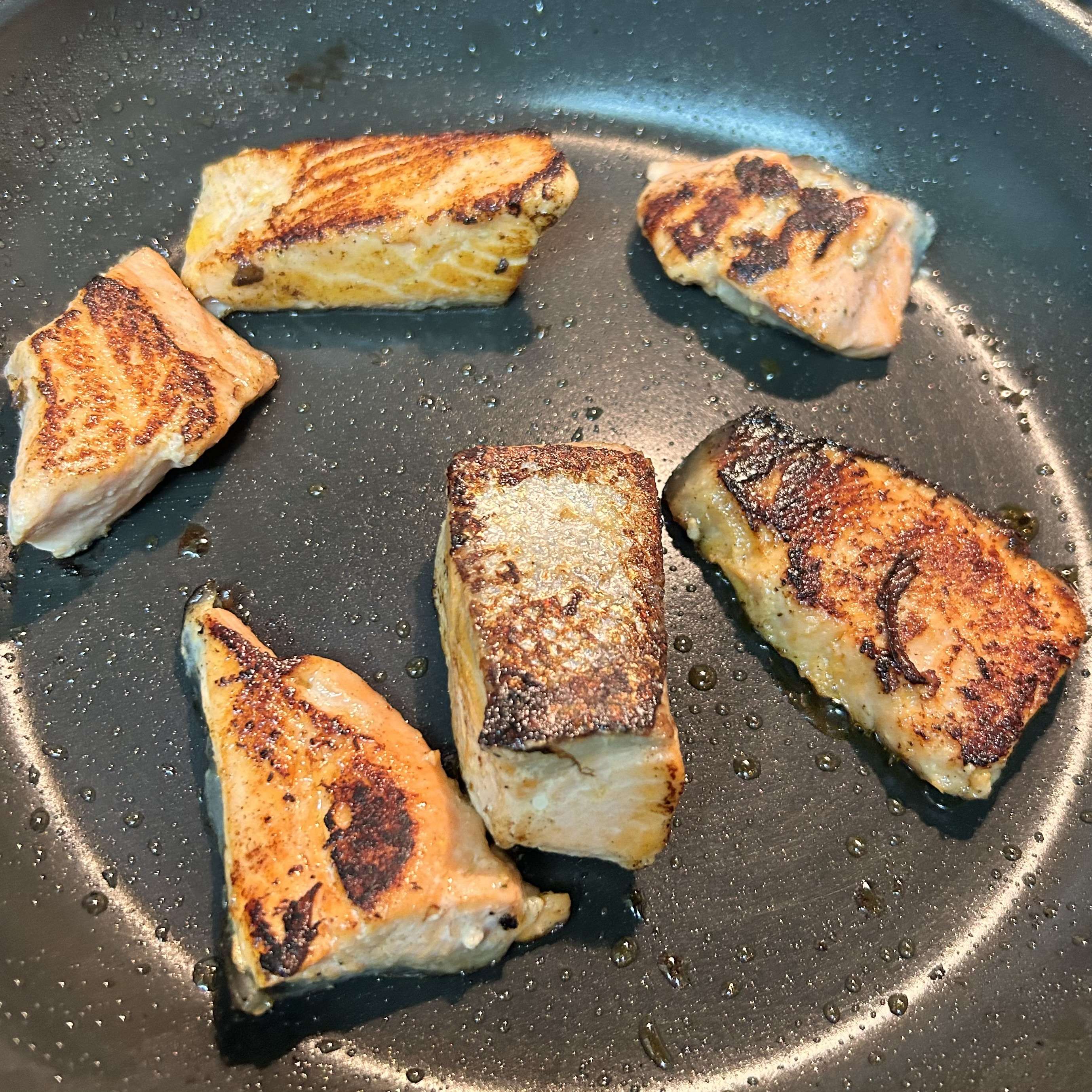 西京焼きは焼くだけなので味付け不要ですが、焦げやすいので火加減に気をつけて焼きました。