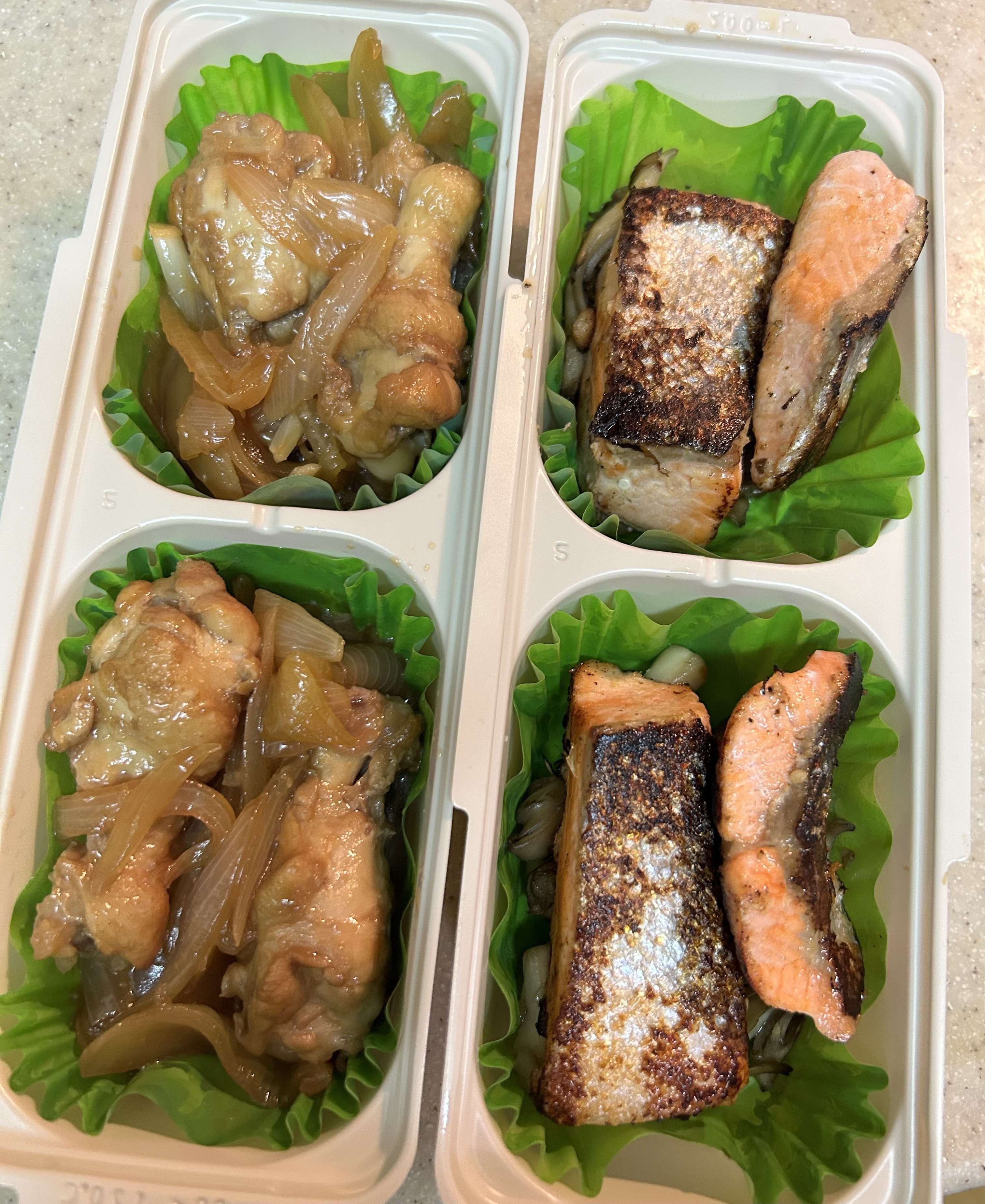西京焼きに味付けされた鮭と、その下に敷く舞茸を購入。