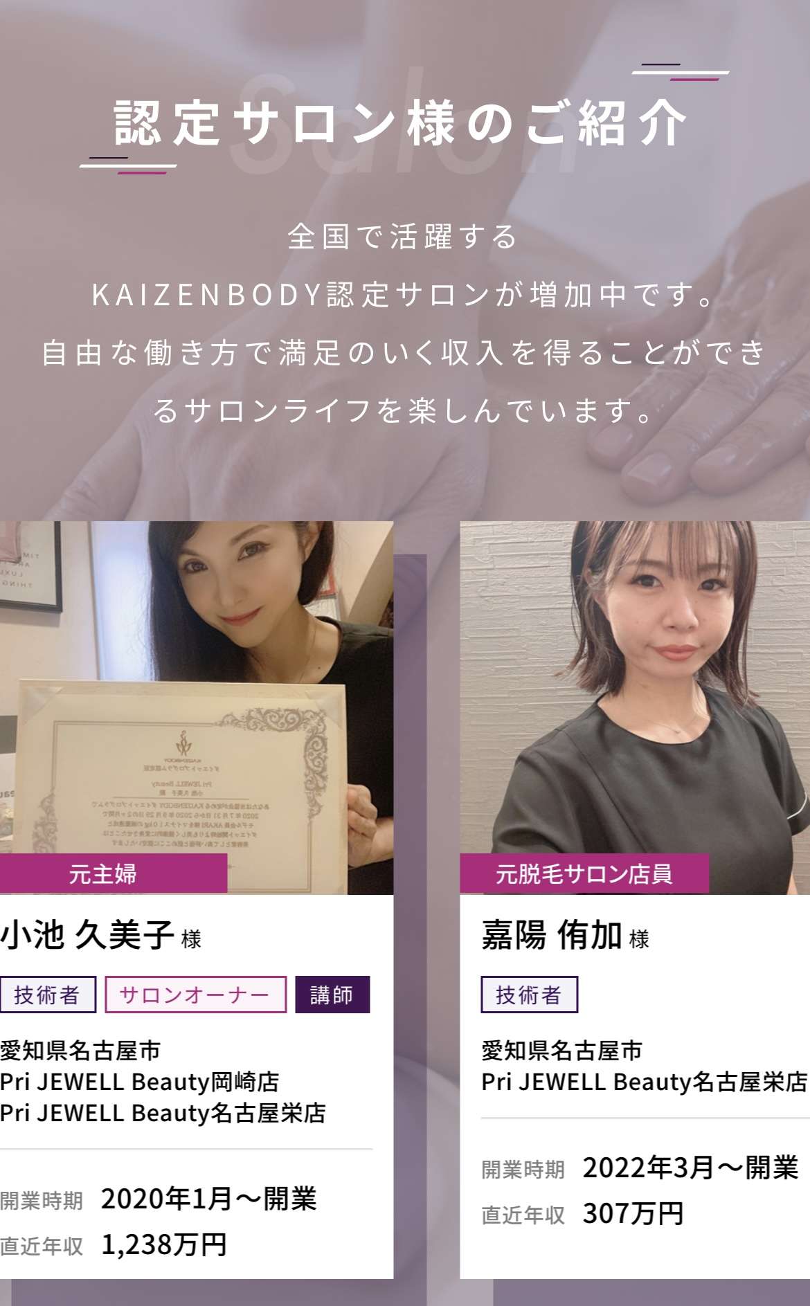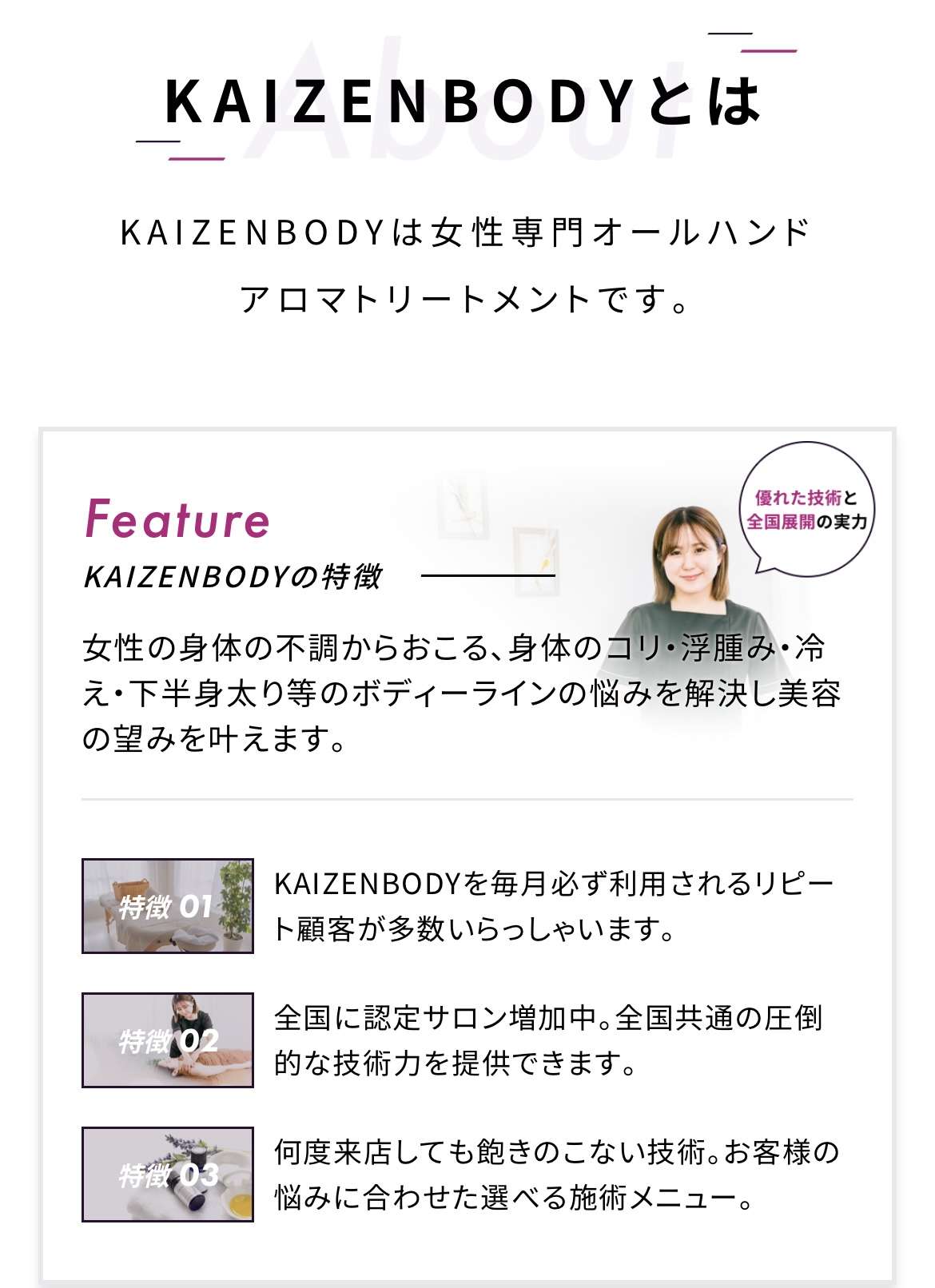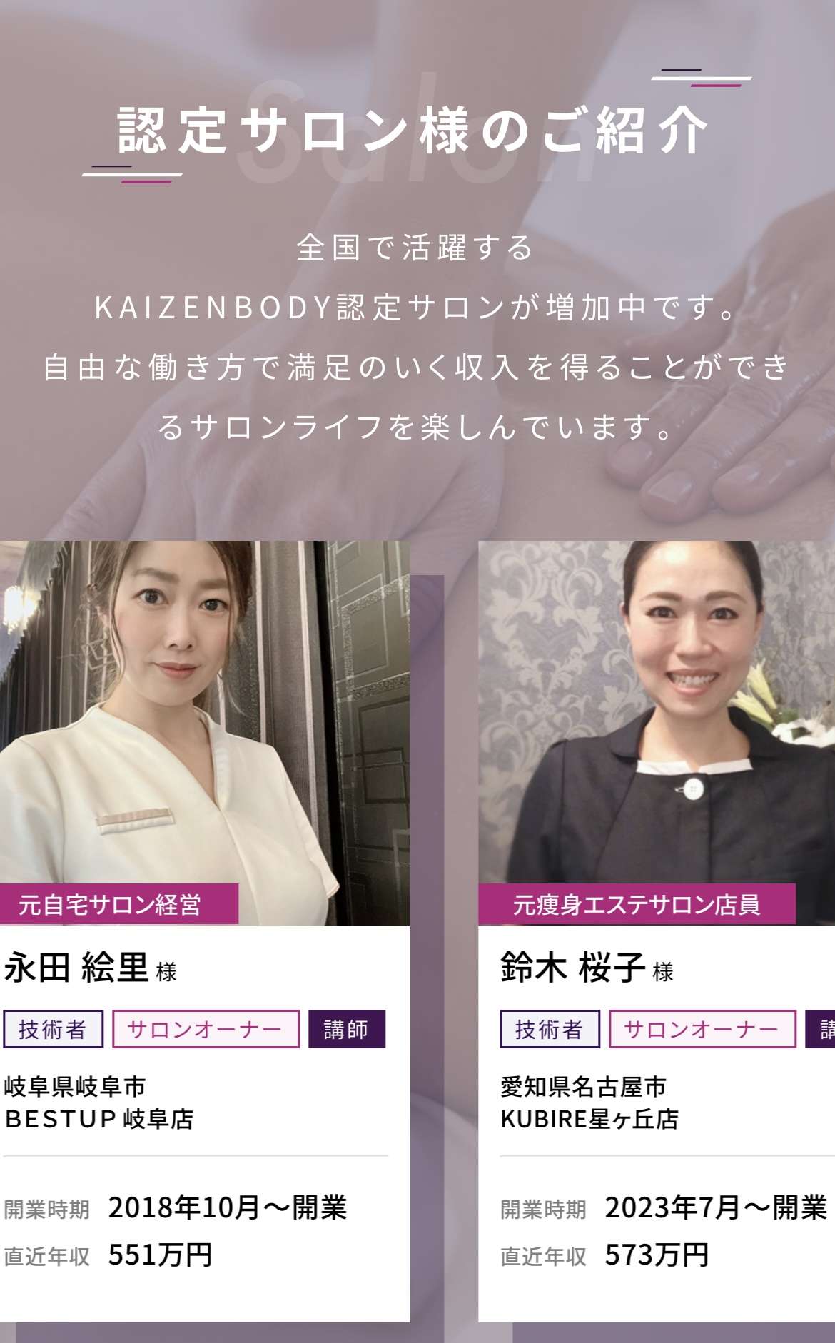 KAIZENBODYアカデミーは、エステ業界で過去に前例のない方法でもっとも効率よく質の高い技術力を得られる講座内容になっています。
