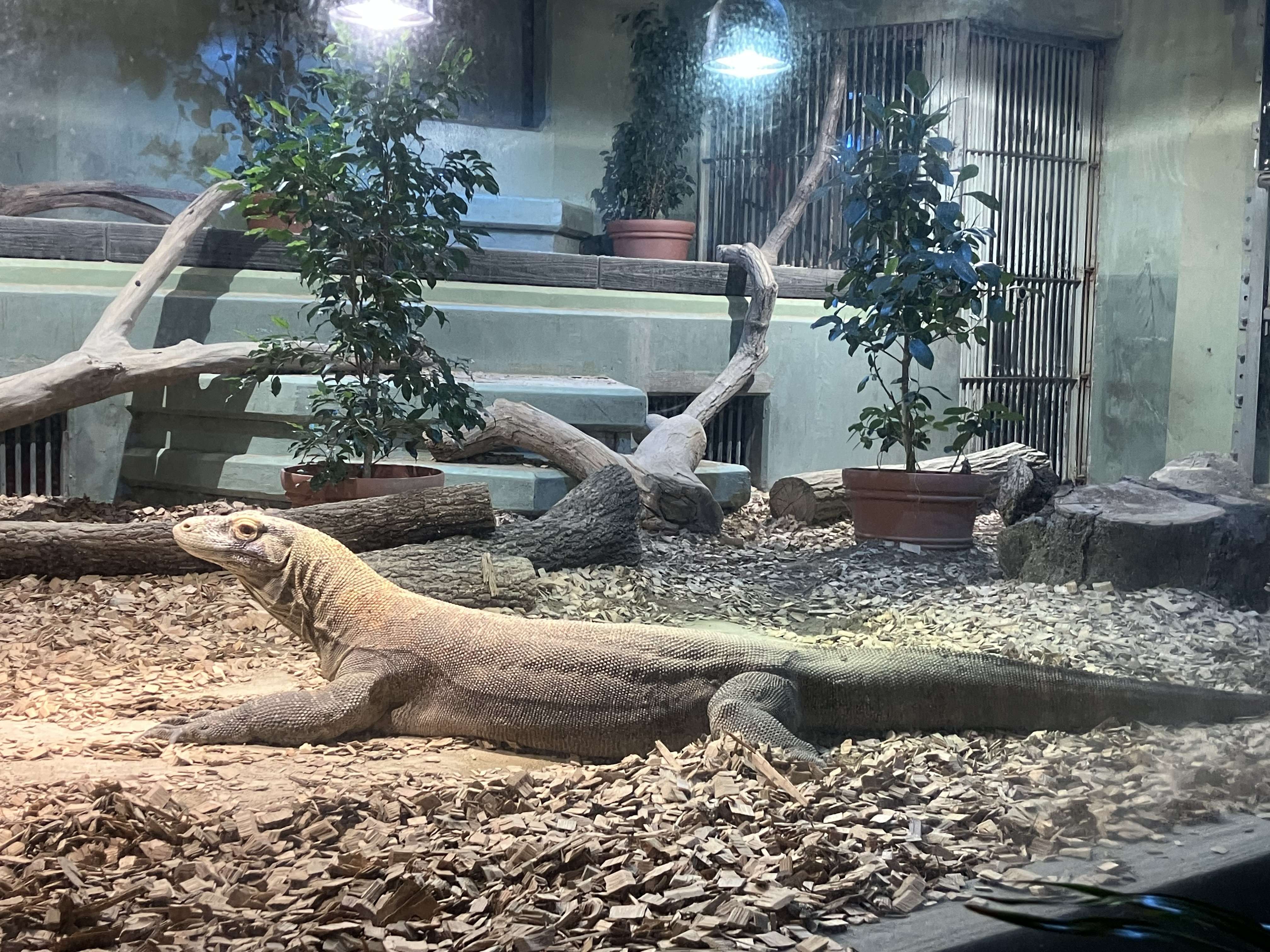 東山動物園へ出かけました。お目当ては、コモドオオトカゲのタロウです。週末は行列と聞いたので、今日は平日かつ雨予報なので人が少なそうと思い見に行きました。朝9時にオープンし、タロウのところへいくと近くに座っていてとても可愛かったです。歩く様子や、木を使い上に登る様子も見ることができ癒されました☺️