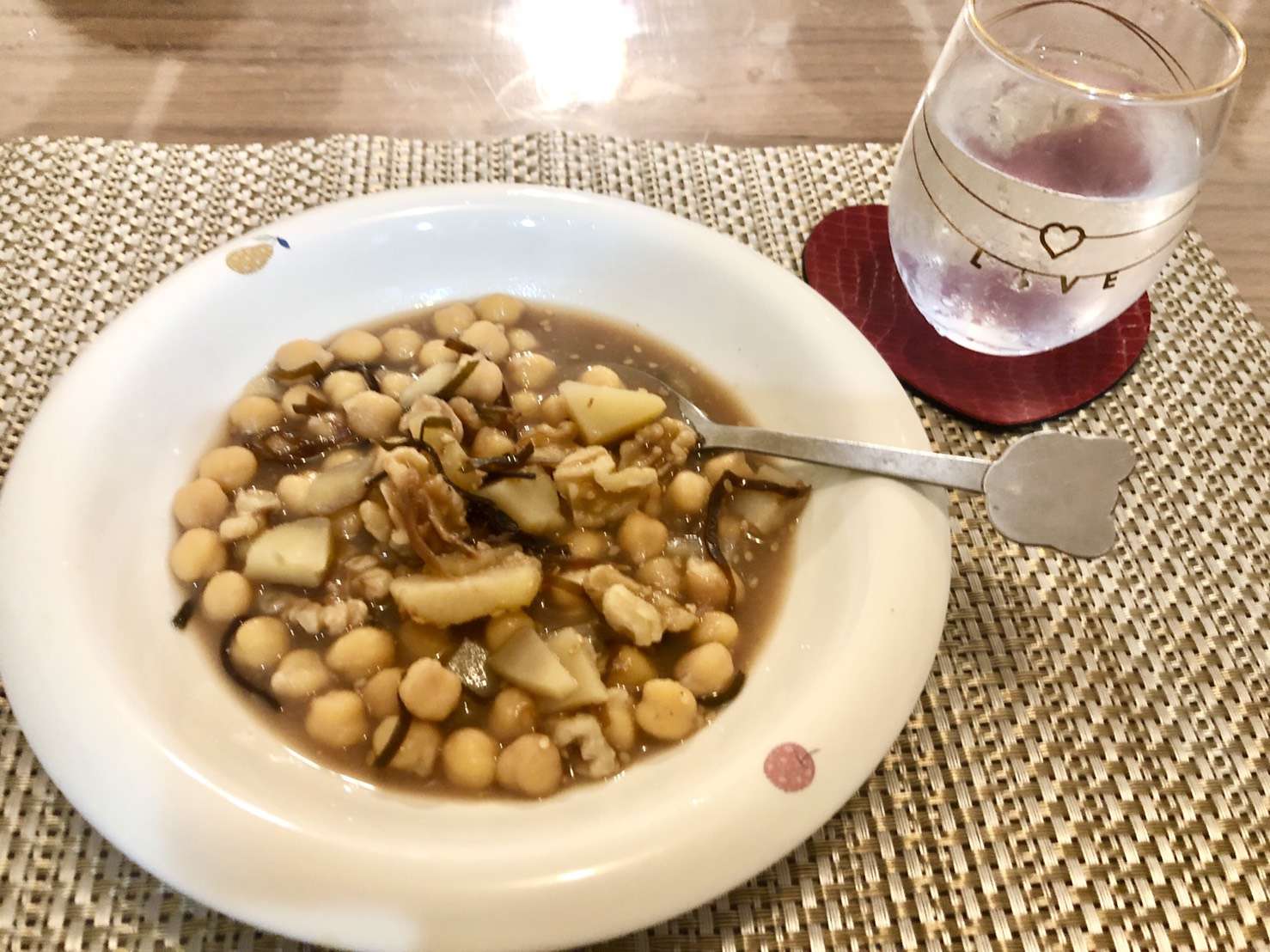 ちなみに昨日おにぎり2つは多かったので、今日は、ひよこ豆を使って、昆布水とかつおだし、サツマイモや昆布、小魚やクルミをたっぷりいれたみそスープを作り食べました♪
