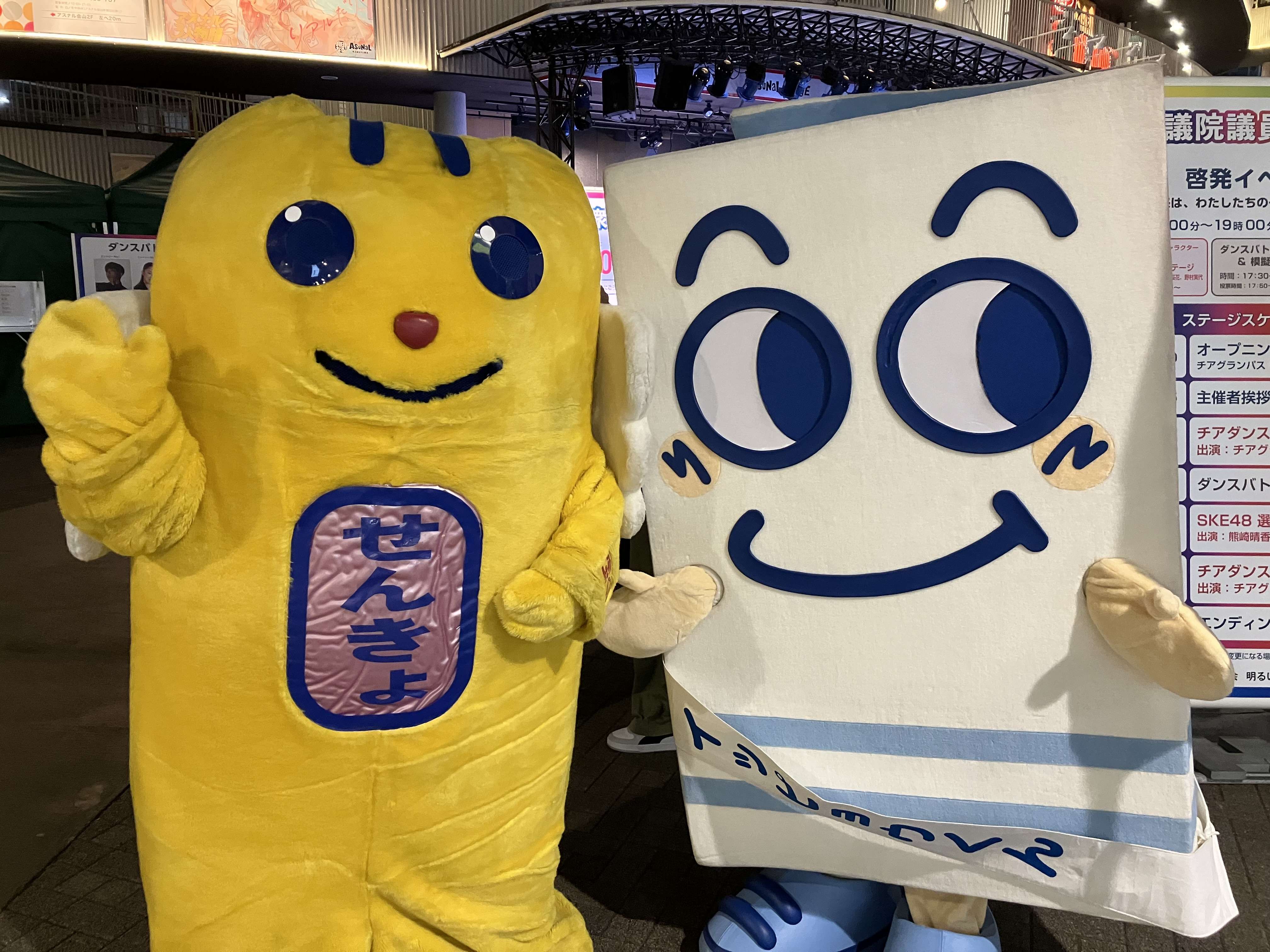 金山駅を歩いていると、見たことのないキャラクターがいました。衆議院選挙のキャンペーンできていて、写真を撮らせてもらいました☺️ 最後、ハイタッチをしてお別れしました。愛嬌のあるキャラクターで可愛かったです。名前を聞くのを忘れたので、今度会ったら聞いておきたいと思います。