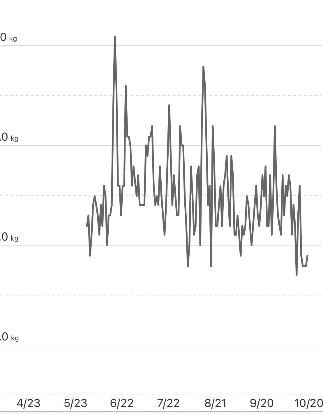 毎日同じくらいの時間に体重測ってますが、半年表示にすると推移が分かります。
