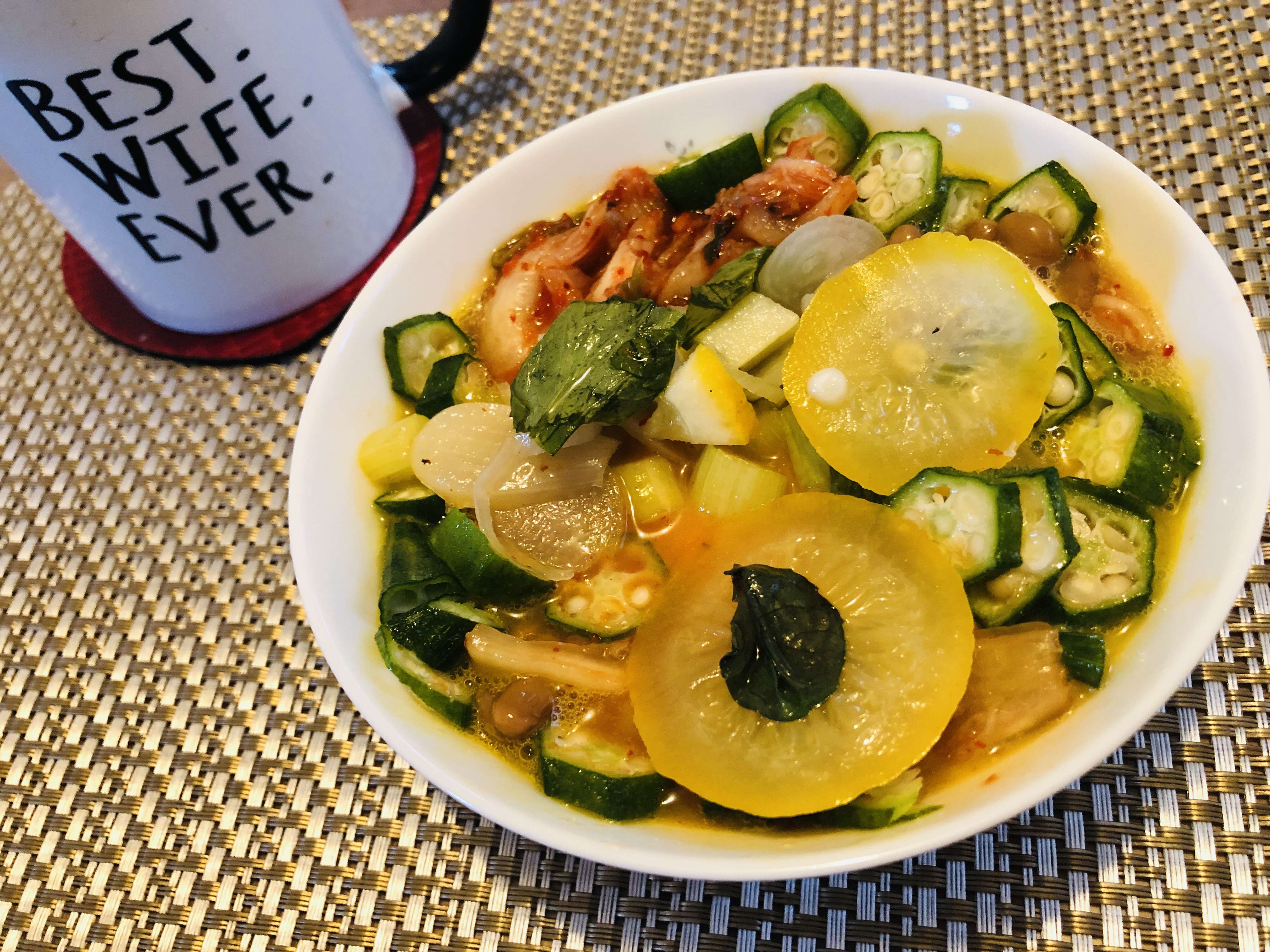 今朝は時間がない中でも、ヘルシーにがっつりスタミナをつけたかったので、湯豆腐にキムチに納豆に温泉卵にオクラに自家製ハーブピクルスとレモンで🍋ペロリ♡