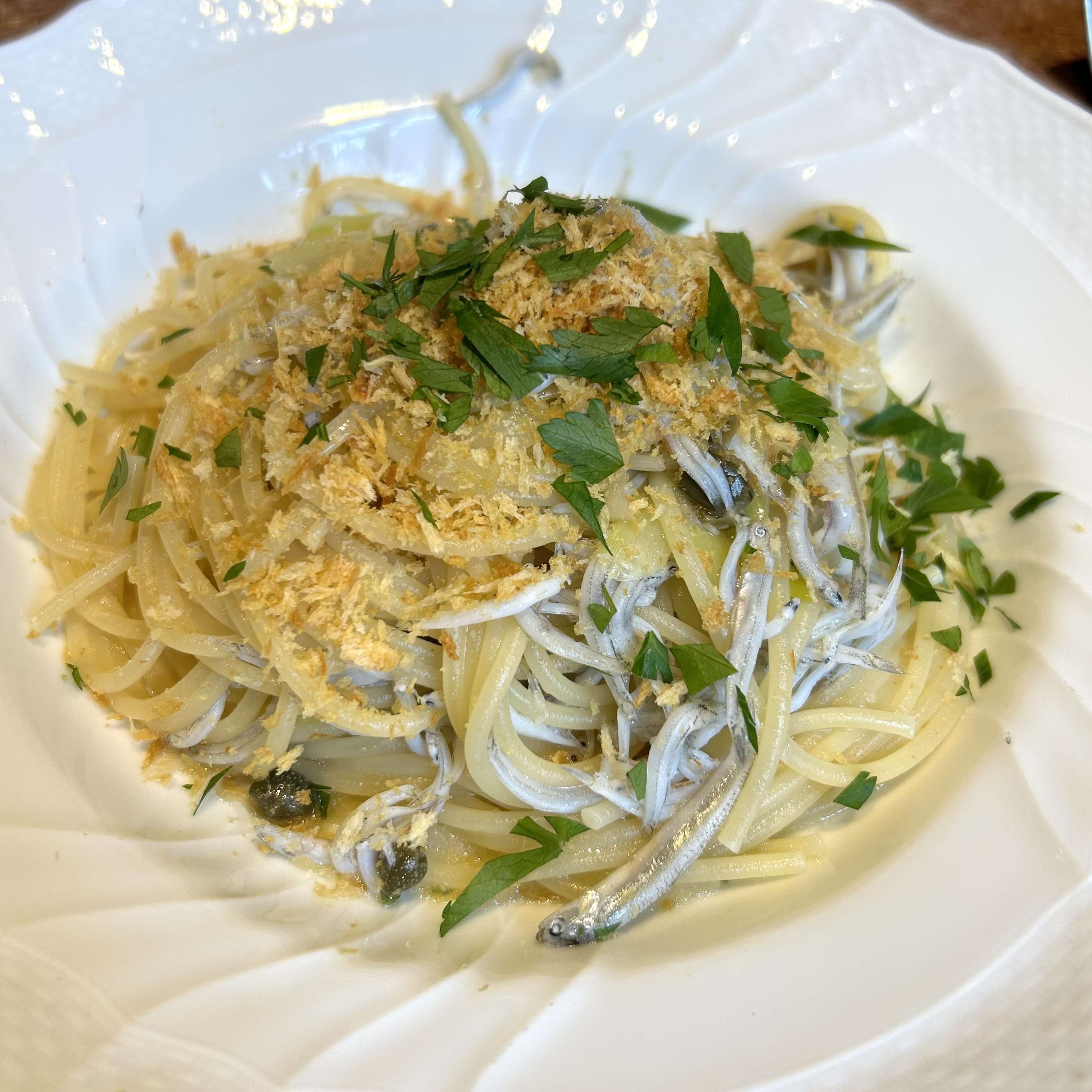 パスタはしらすがたっぷりで、葱との組み合わせが斬新でした。