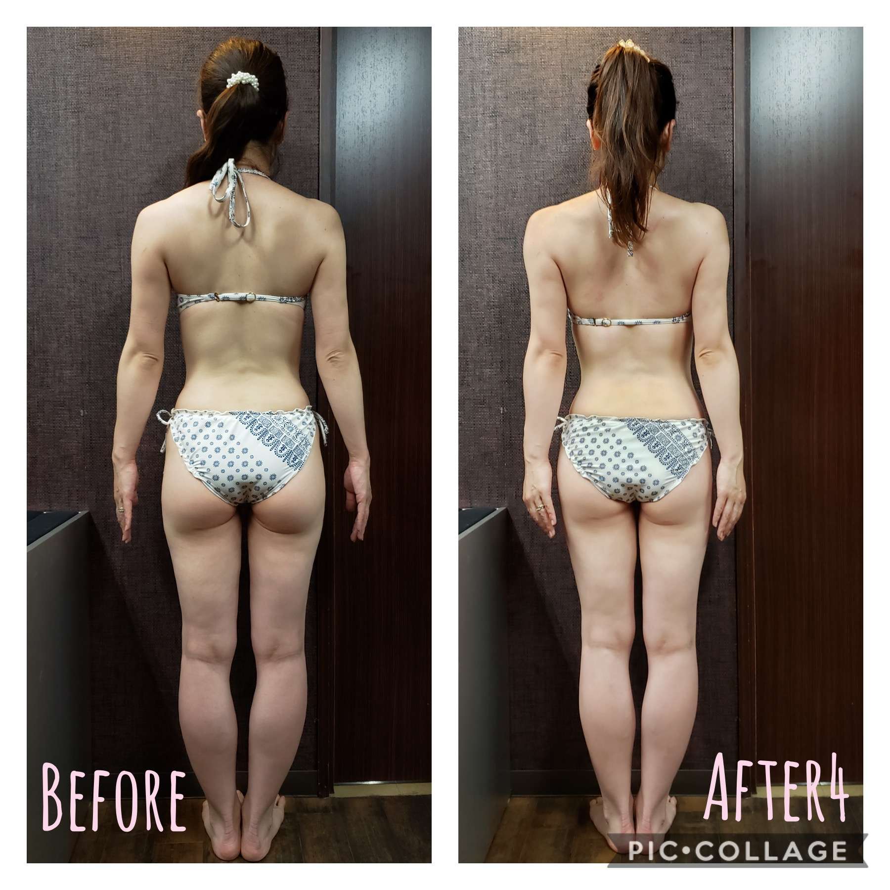 このお尻の高さが上がり、小さくプリッとなった変化!太ももの付け根の方の隙間も違います!