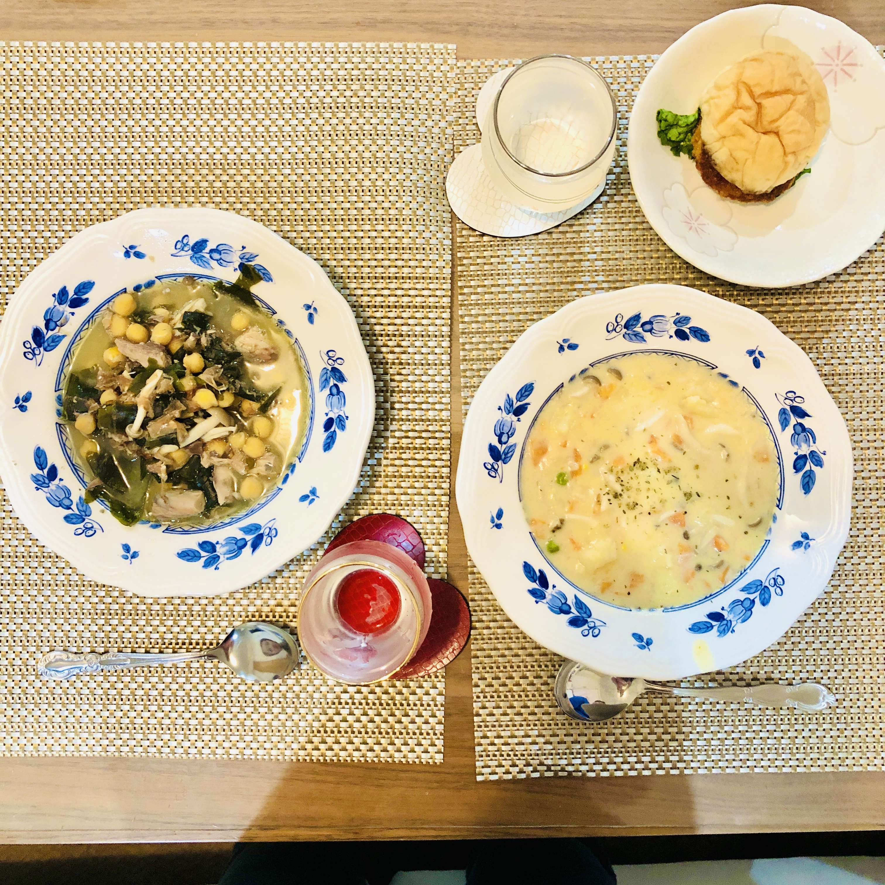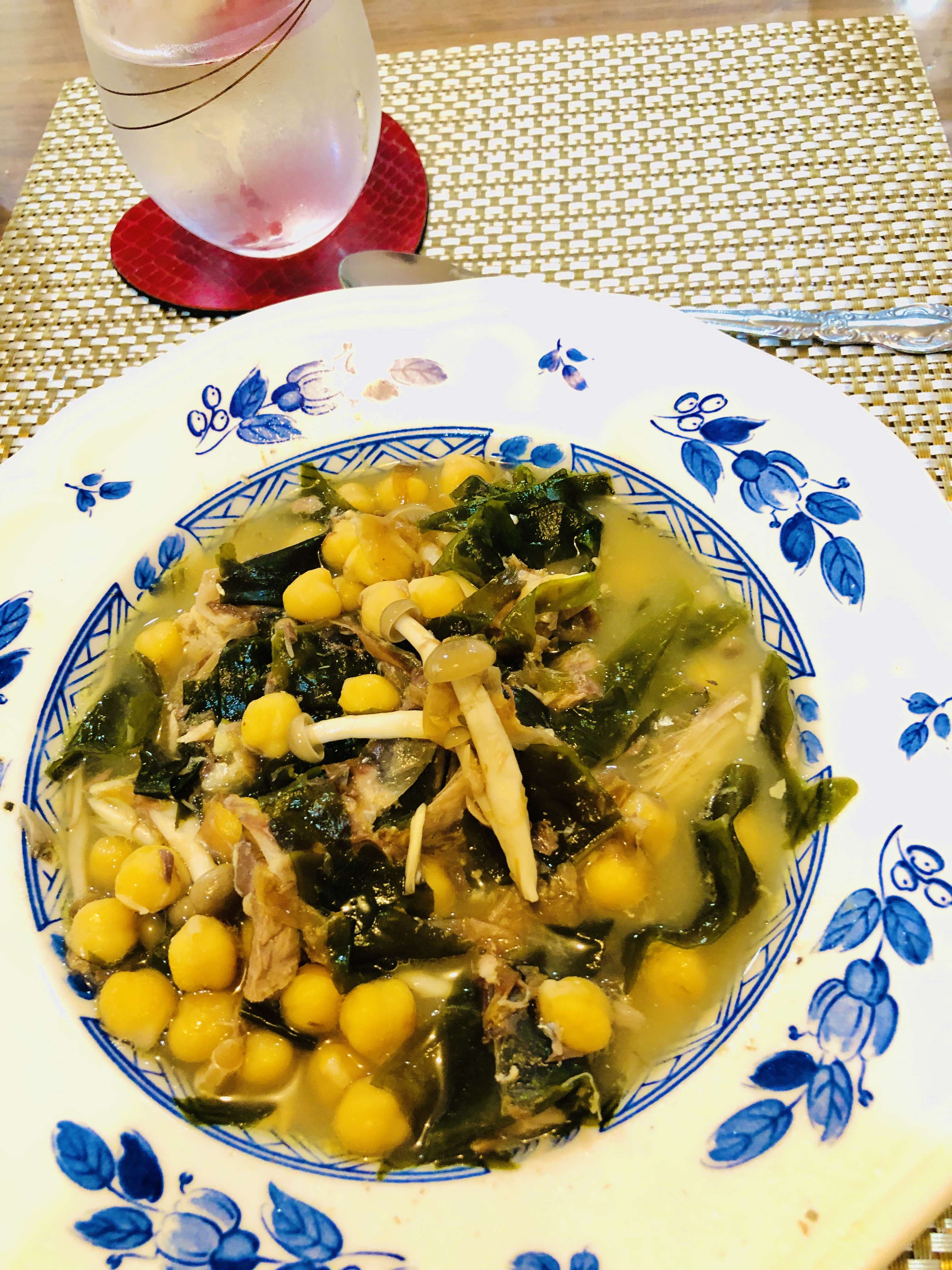 私はひよこ豆に海藻やきのこ、鯖などをいれ、味噌や昆布水、かつおぶしなどで煮込んだスープサラダ♪