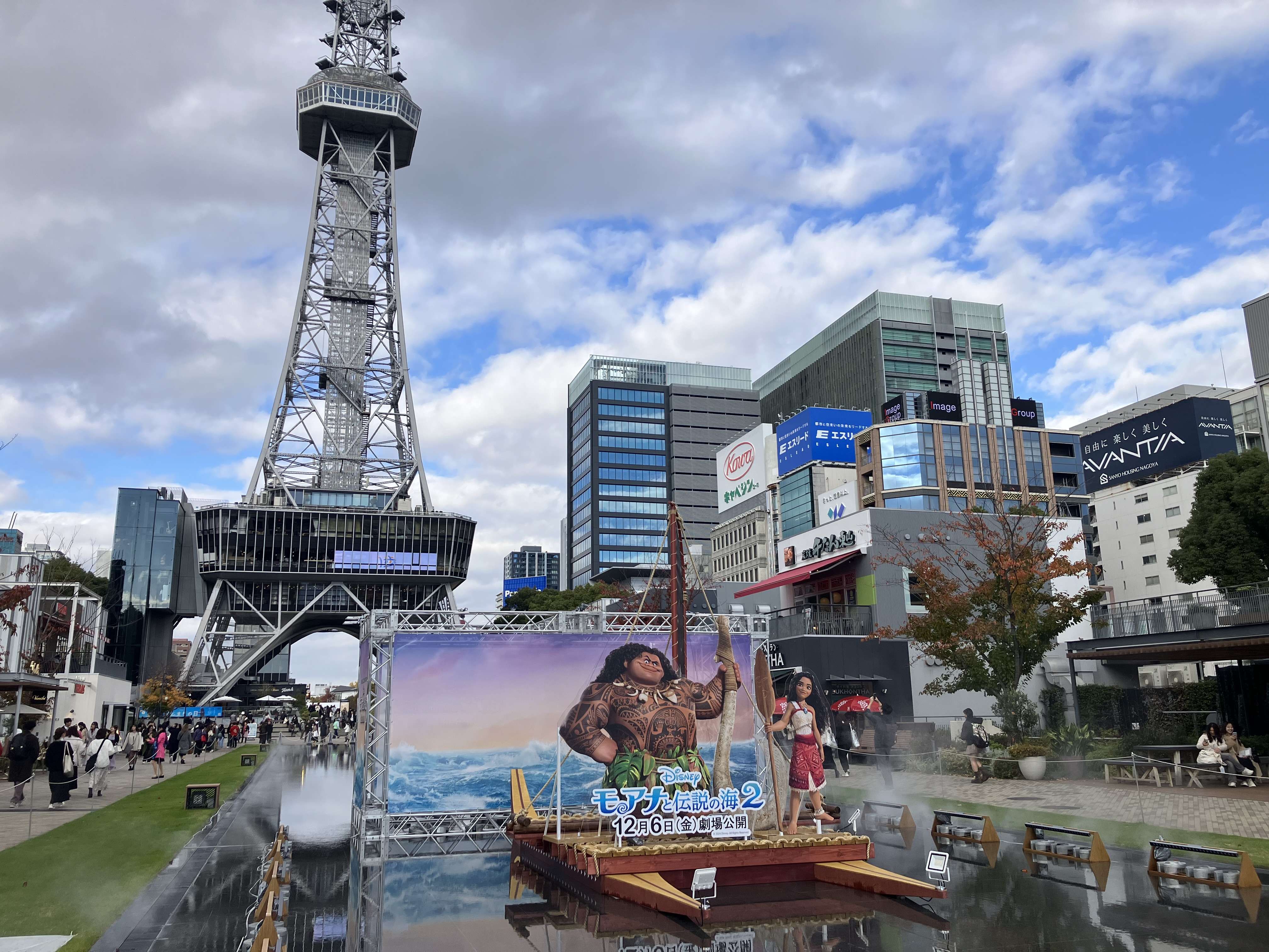 帰りに、高原さんに教えてもらったモアナの展示を見に行きました。テレビ塔前の水に反射していて、とても綺麗でした🌼