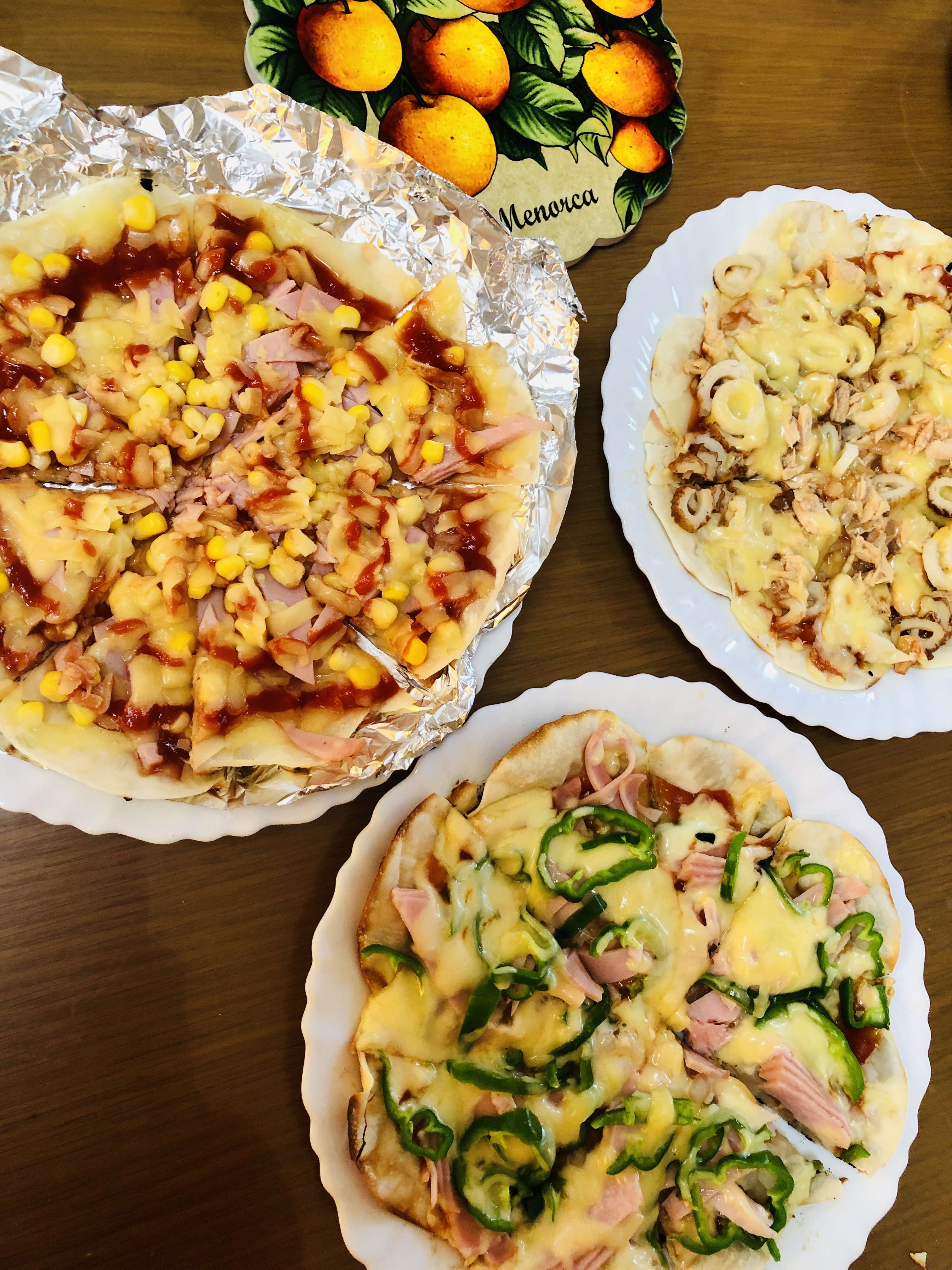 夜→米粉餃子の皮で作る手作りピザ