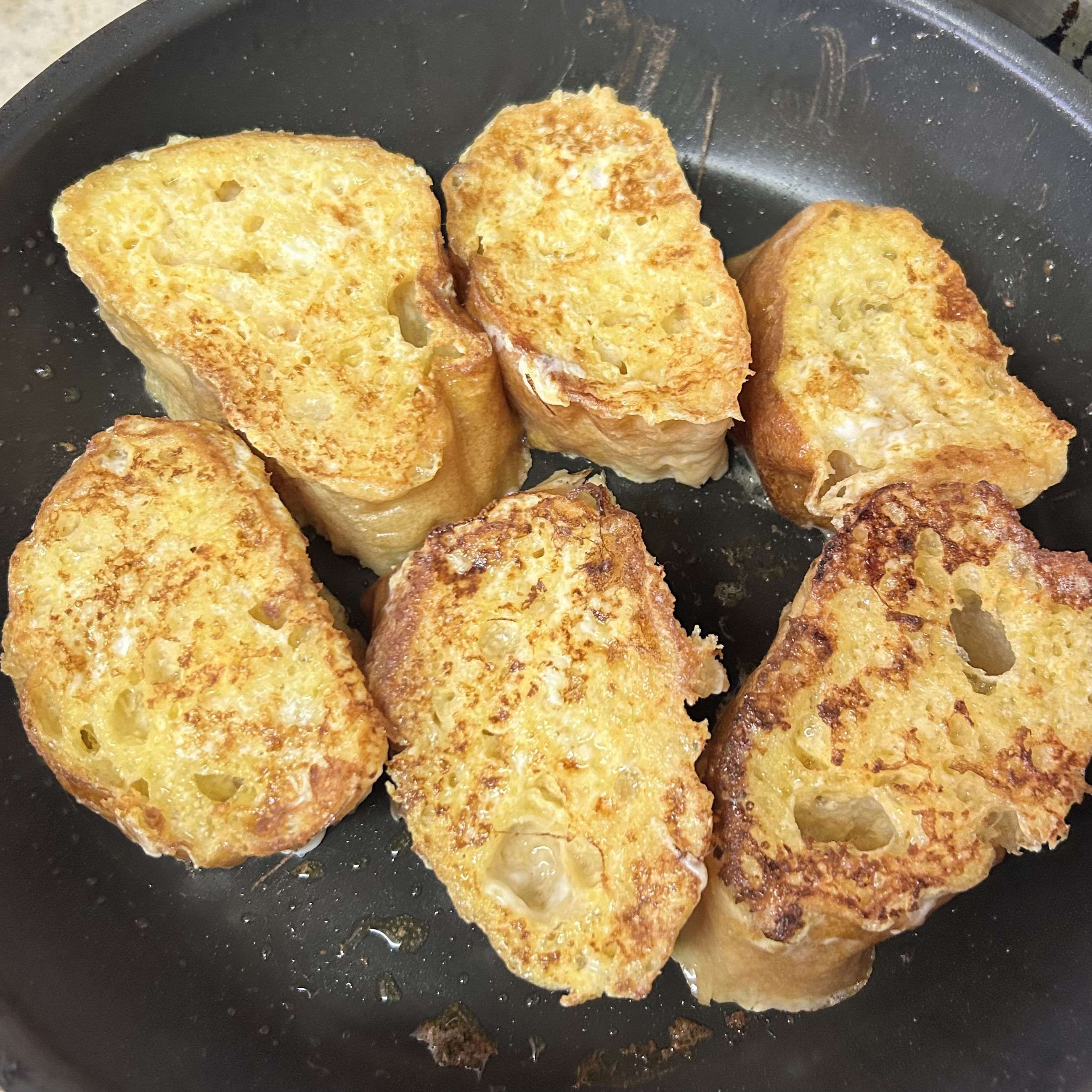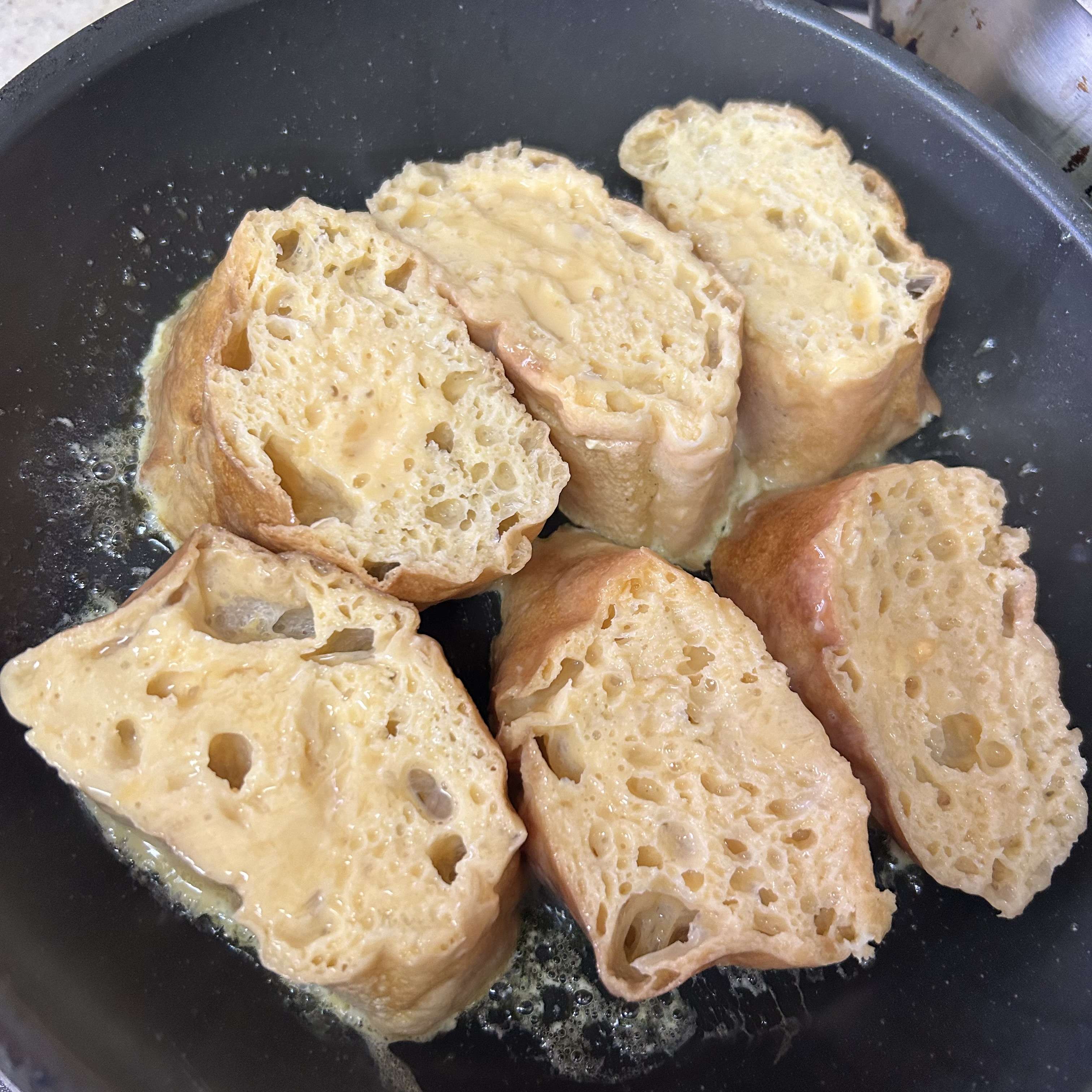 卵、豆乳、砂糖を適度に混ぜて漬けておき、しっかり液が浸透したところでフライパンで焼きました。