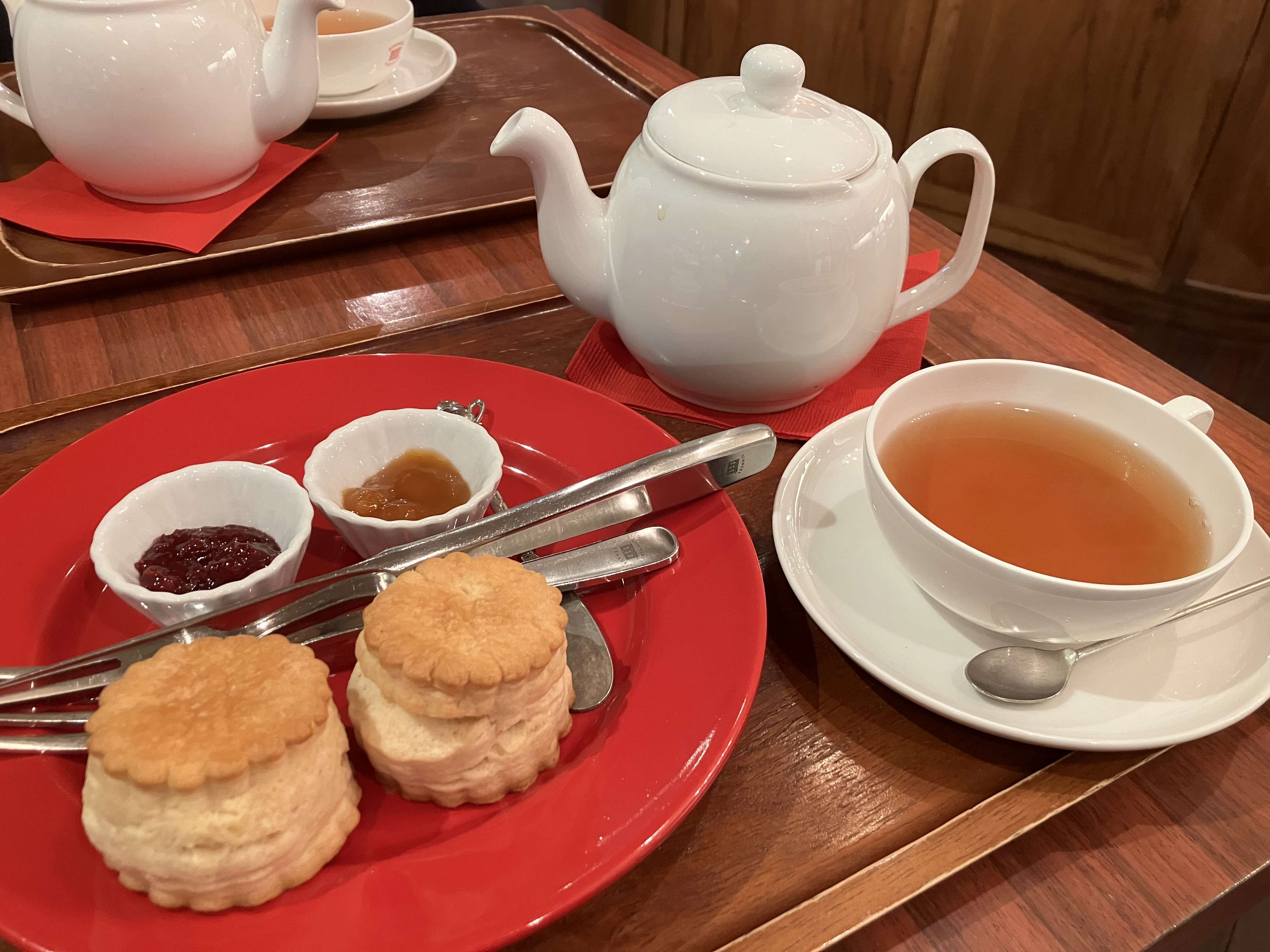 夫とデンメアティーハウスでお茶しました。とてもおしゃれな外観でしたが、中もとてもおしゃれでした。紅茶も美味しかったのですが、スコーンが私は過去一で美味しかったです。ジャムも2種類あり最高でした🌼