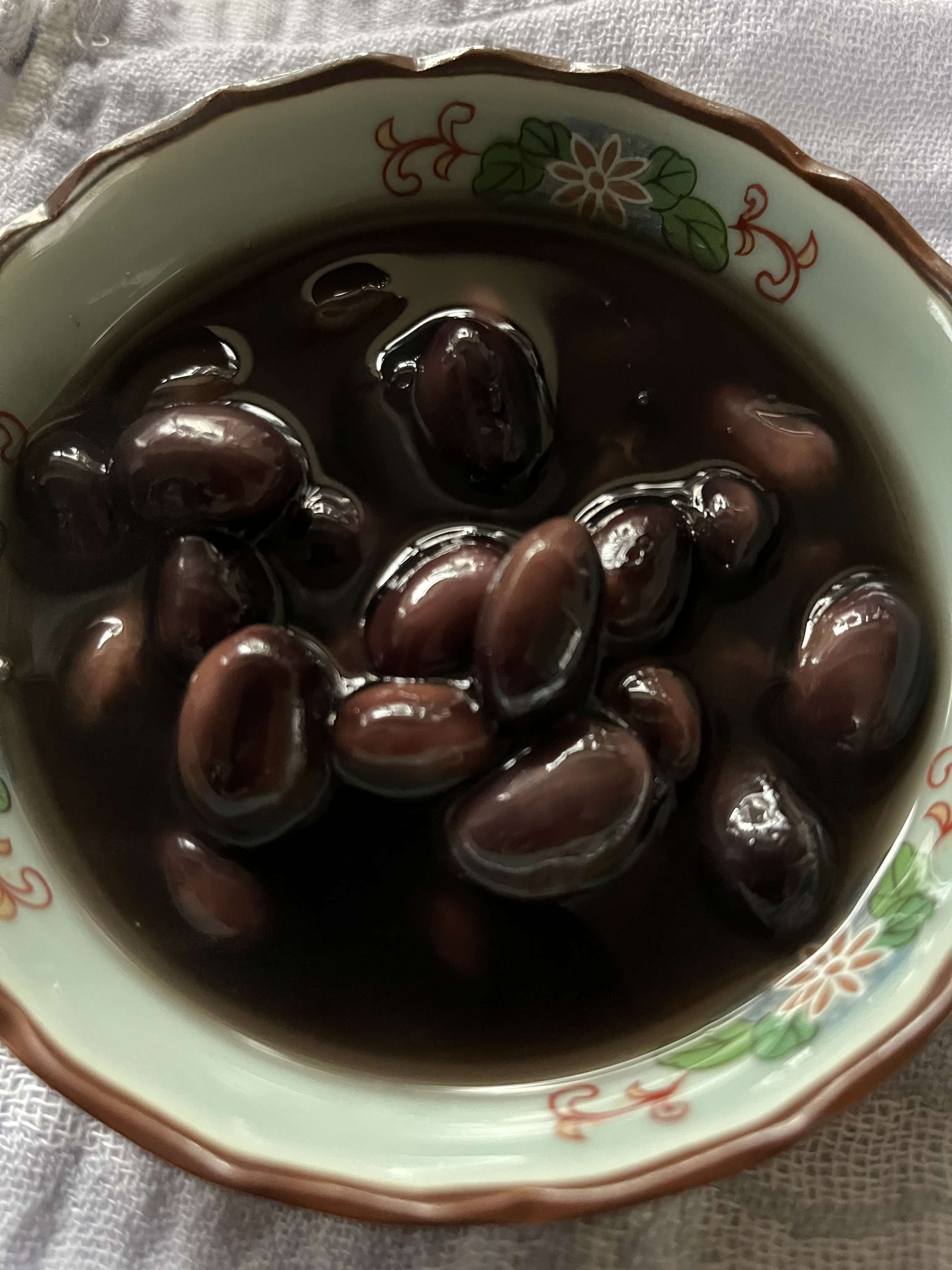 この黒豆は義母が畑で作ったものです。大豆や黒豆は買って煮るほど好きです